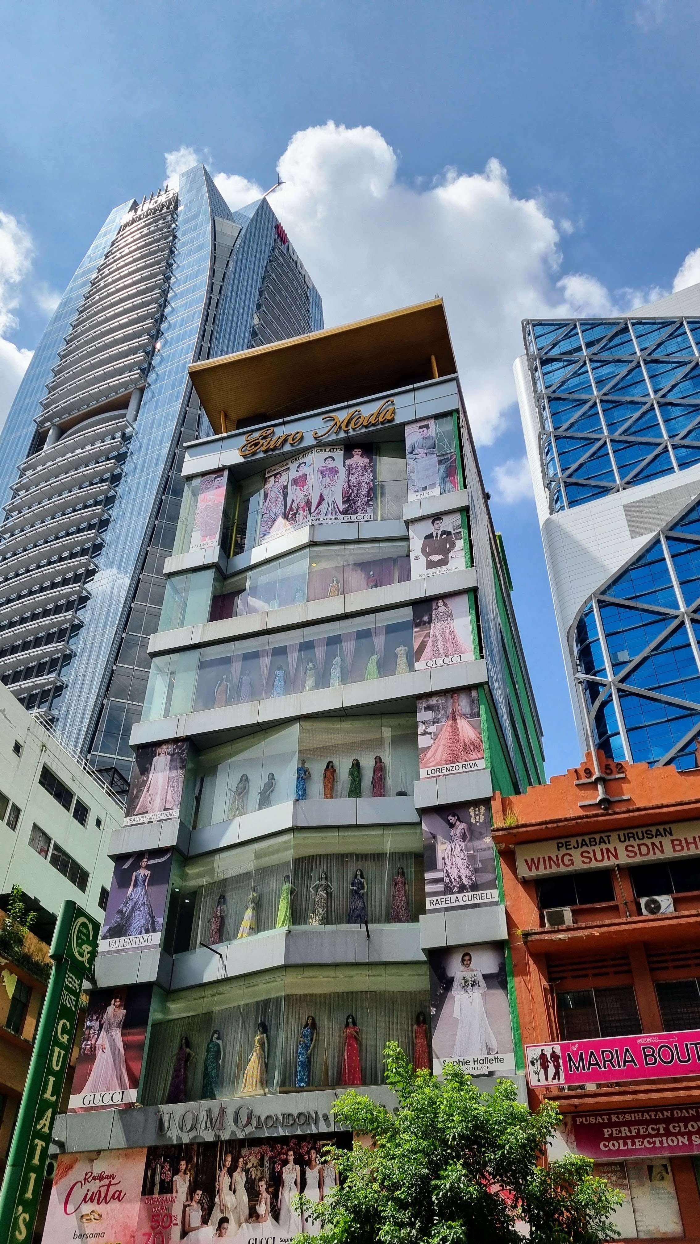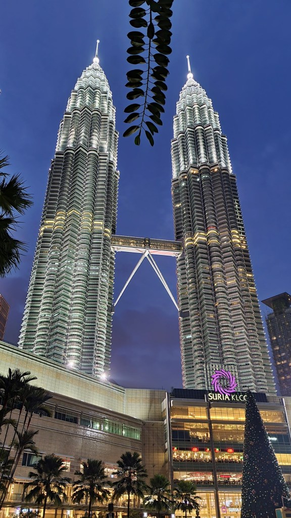 L’emblème de Kuala Lumpur est depuis 1998, le duo architectural des tours Petronas. Situées dans un quartier de bureaux hérissés de gratte-ciels gris, les tours d’argent se démarquent de leurs consœurs par une originalité marquée. Mélange réussi d’une architecture postmoderniste et d’une symbolique islamique, elles furent quelques années durant les tours les plus hautes du monde. Les quatre cent cinquante mètres de l’ensemble s’imposent avec une élégance affirmée au milieu d’un univers de tours de bureaux classiques paraissant soudain bien fades. Et même si nous sommes loin de l’exception singapourienne, les tours illuminées, habillées d’un costume blanc glacé laissent le soir, les spectateurs enthousiastes. La tour de télécommunication Menara, est l’autre fierté de la ville, moins remarquable en terme d’esthétique mais toujours appréciée pour profiter au sommet d’un panorama d’exception sur la ville de KL.