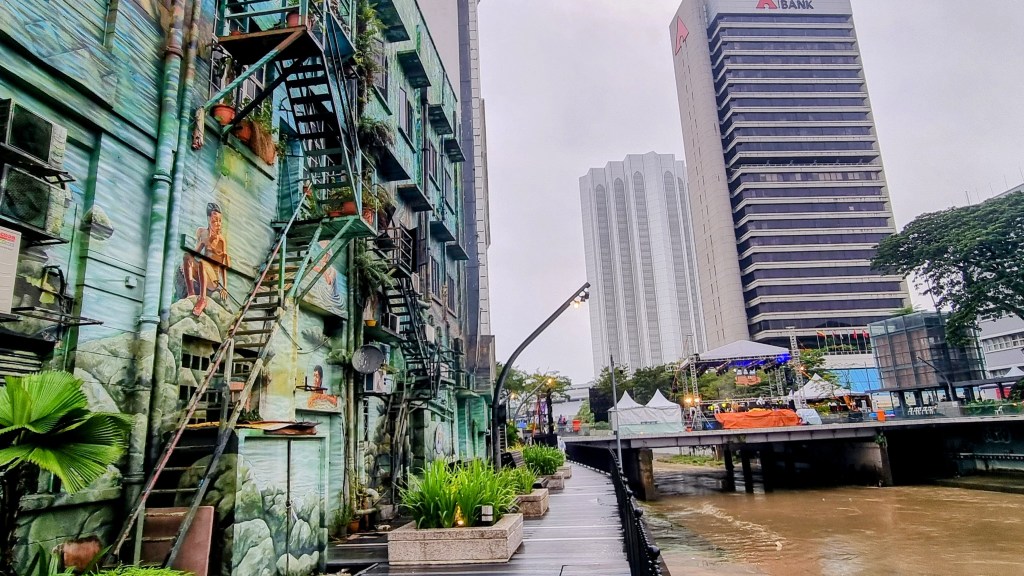 En début de soirée un ensemble de jazz se produisait sur les bords du fleuve Klang. Les spectateurs installés sur des palettes surélevées vibraient au son d’un jazz classique, chaleureux et enlevé, indifférents au ciel gris menaçant de s’écrouler à tout instant.