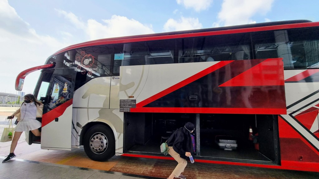 On quitte Singapour un matin, à bord d’un bus climatisé grand confort où nos bras tendus ne touchent pas le siège trop éloigné de devant. La frontière entièrement informatisée se franchit en quelques minutes avec une fluidité déconcertante. On en oubliera même de récupérer nos sacs à dos dans la soute du bus, du côté de Singapour. Etourderie fâcheuse que nous constaterons seulement sur le versant malaisien. Il nous faudra donc repasser la frontière dans le sens inverse pour récupérer nos affaires abandonnées sur un bout de trottoir de Singapour, puis retourner ensuite définitivement et au complet cette fois, en Malaisie. Ces derniers petits réglages effectués, on remonte dans notre vaisseau climatisé, installés pour quelques heures de routes et de lectures, ainsi affalés sur un ruban de bitume sans heurts ni surprises.