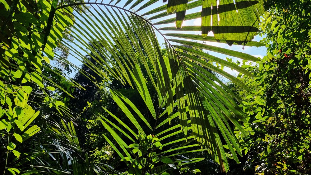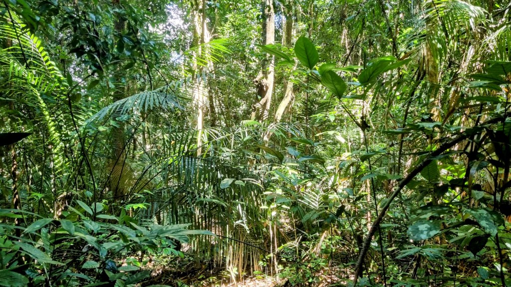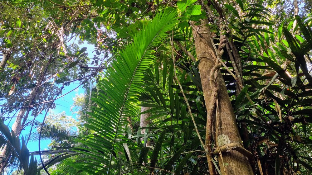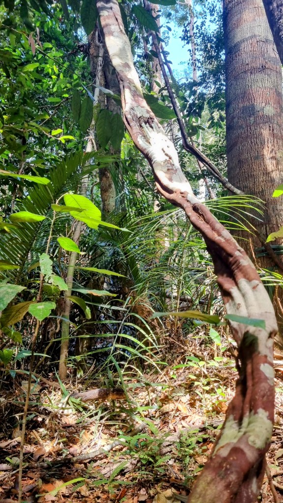 Le mot qui germe immédiatement dans la tête lorsqu’il s’agit de décrire ce que l’on voit serait peut-être l’exubérance. Il y a de la générosité dans cette forêt où quelque dieu Pan brouillon aurait lâché la bride à une nature créative toute puissante. Ici tout pousse sur l’autre, grandit et meurt en compagnie de la branche d’à côté, chacun s’appuyant sur la liane voisine pour aller puiser la lumière et effleurer l’inaccessible étoile, cette divinité sublime commune aux hommes et aux arbres que l’on nomme le soleil.