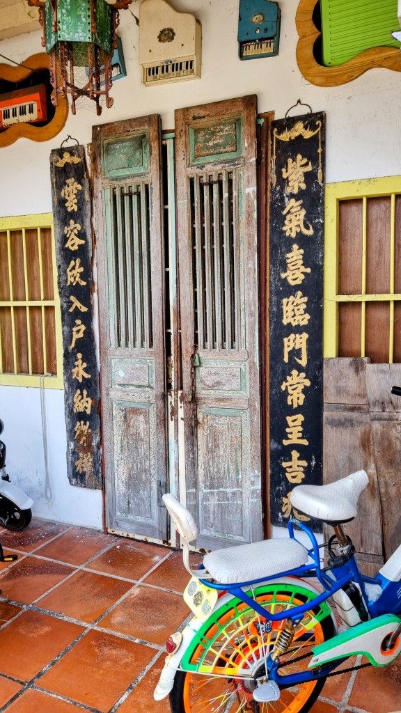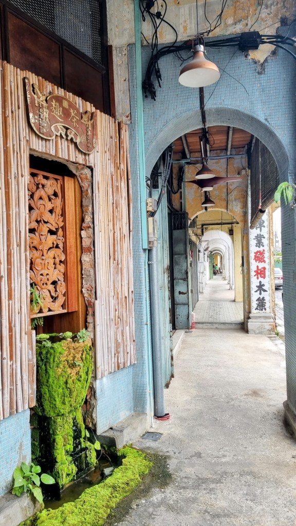 A la sortie du port, l’avenue principale qui longe la mer, est bordée de beaux bâtiments coloniaux blancs entièrement restaurés et donnent à la ville une austère prestance bourgeoise. Nous nous engouffrons dans les ruelles adjacentes, sacs aux dos, pour retrouver cette architecture sino-portugaise désormais familière depuis Singapour, constituée de petites maisons d’un étage, aux persiennes en bois sur le haut et habillées d’arches courant le long des trottoirs au rez-de-chaussée.