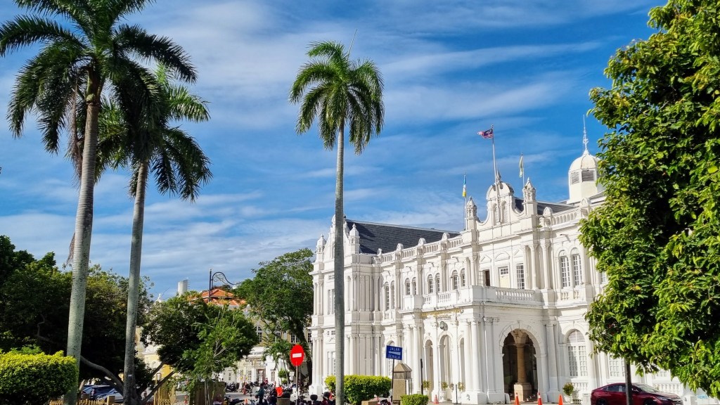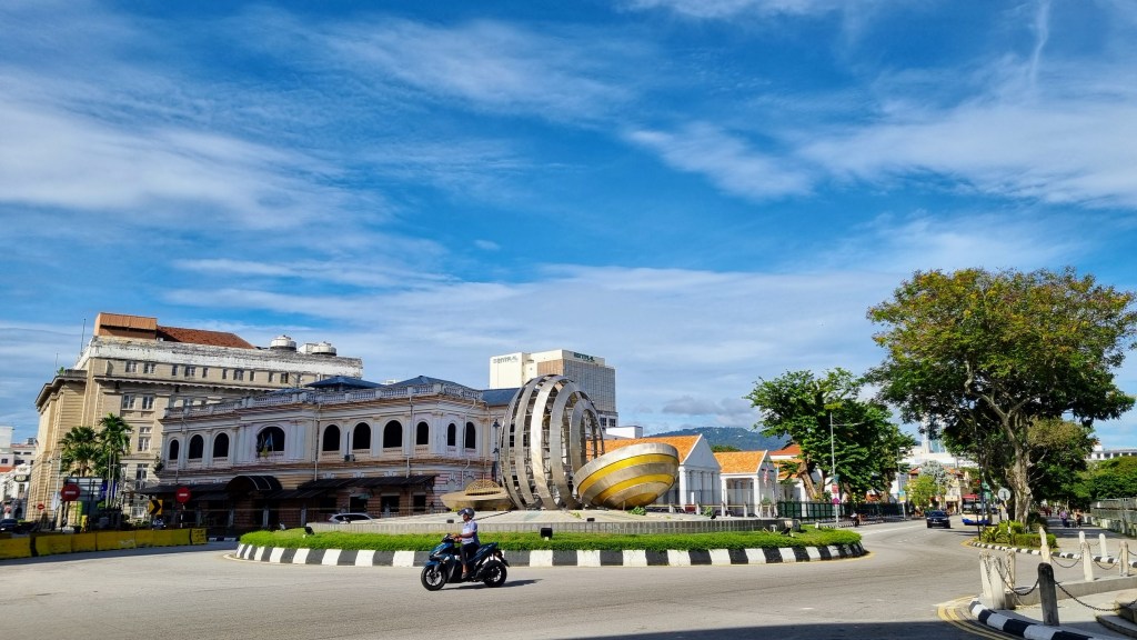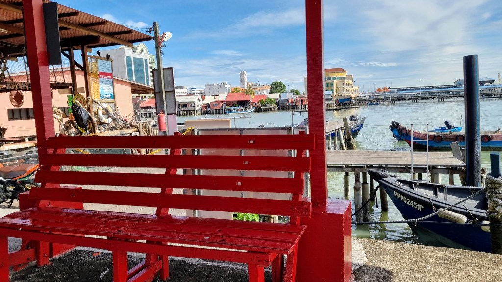 Deux jours plus tard, changement d’île, de caractère, de perspective, de port, Penang accueille les nouveaux arrivants sur la jetée d’une imposante capitainerie rose qui marque l’entrée dans l’histoire des lieux. George Town respire la ville en lettres capitales. C’est grand.