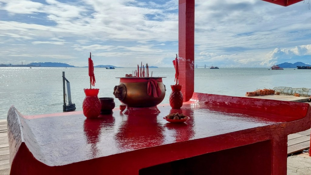 Dans l’entrée des maisons, on aperçoit toujours l’autel réservé aux esprits des anciens. Un bâton d’encens, une offrande, une respectueuse inclinaison du corps en passant le matin. Ça ne coûte presque rien de saluer le passé, un signe de la main chaque jour avant de filer vers l’avenir. Au bout de la passerelle, un temple taoïste est installé face à la mer. On s’assoit sur le banc rouge, près de l’autel. Les visiteurs s’inclinent, se recueillent en croisant humblement le regard des dieux puis se tournent vers l’océan, l’autre divinité du lieu. Le silence de la mer se conjugue parfaitement avec les lumières du temple. Dans l’air flotte quelques effluves d’encens salés et puis l’idée que la nature offre bien souvent le meilleur des refuges.