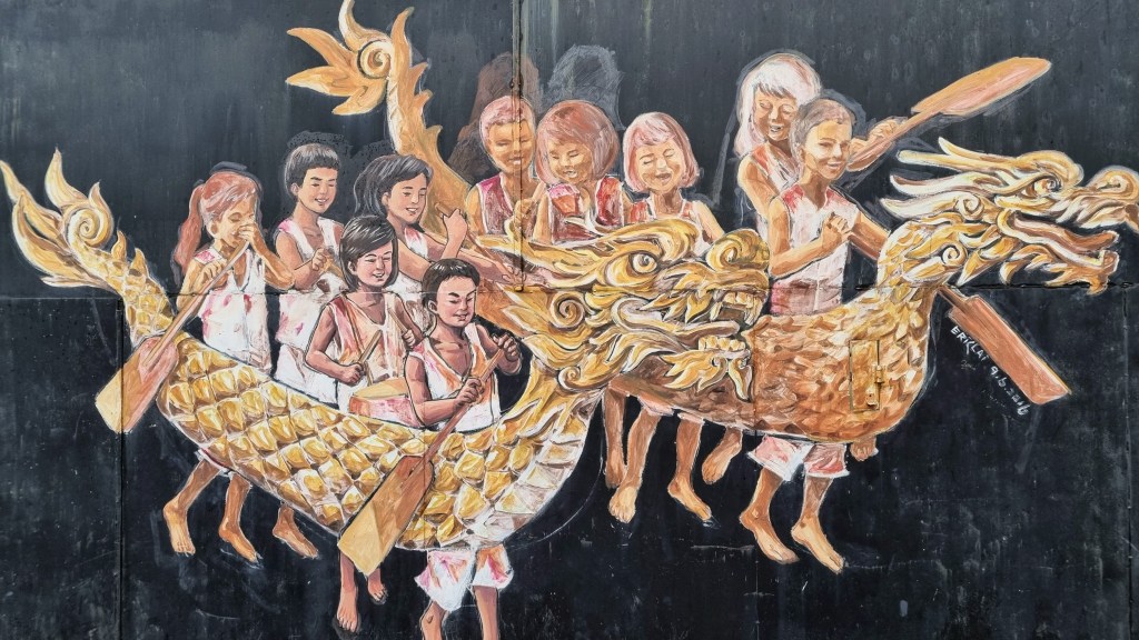 Au milieu de ces témoignages du passé, Ipoh se cherche un présent. Alors non loin d’un marché couvert, sombre et humide, la commune a invité des artistes internationaux à conquérir les murs gris des rues. Ils nous font voyager en bande dessinée et rêver en regardant l’art de rue prendre d’assaut les briques et les crépis vacillants. Ils amènent un supplément d’humanité au béton, un peu comme des jeux et des cris d’enfants qui s’éparpilleraient dans les rues au milieu des gens sérieux. On respire en longeant ces murs.