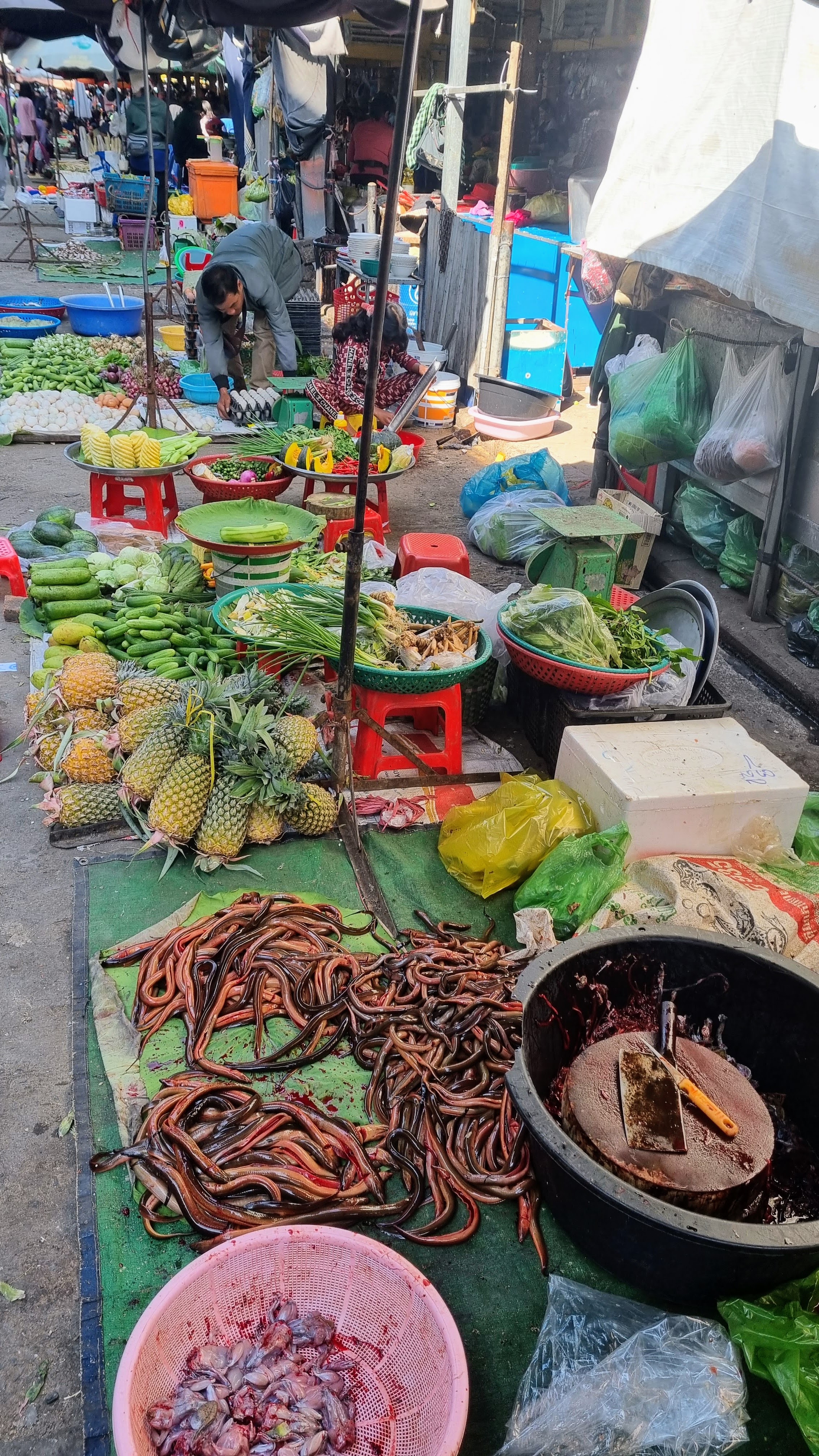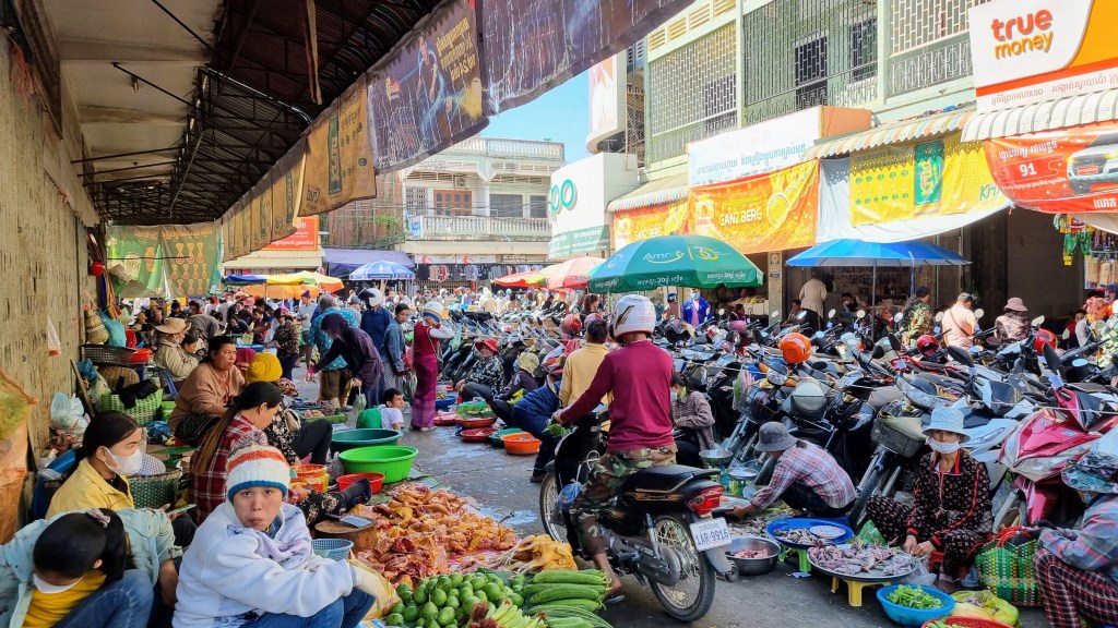 On s’éclipse en faisant le tour des marchés en commençant par le russe qui n’en porte que le nom, espèce de Samaritaine cambodgienne où scies sauteuses et panier de vis en vrac sont suspendues au-dessus des textiles colorés.