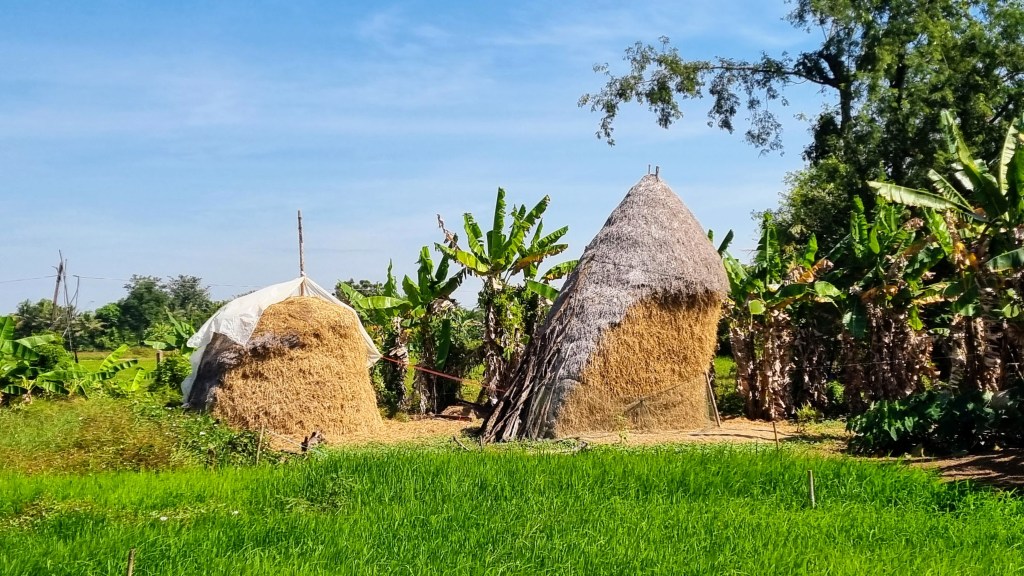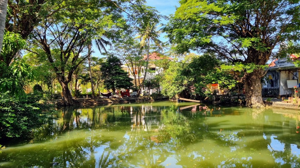 On se perd dans les chemins de terre creusés par la saison des pluies. Des enfants, un filet lesté sur l’épaule, surveillent l’eau d’un étang et lancent au moindre frémissement le piège maillé sur un invisible poisson. Le jeune pêcheur dans un même élan, se jette également aussitôt dans l’eau saumâtre pour relever le filet d’un geste sûr. Les regards d’abord curieux virent aux sourires radieux lorsque nous faisons un signe de la main ou lorsque nous nous arrêtons un instant dans cette campagne amicale.