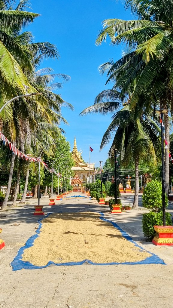 En fin d’après-midi, Le marché couvert assure pour le dîner une récolte généreuse de fruits, mangue jaune géante, fruit du dragon coloré, longanes pulpeux à la chair translucide, clémentines à l’écorce verte gorgées de saveur sucrées. Dans les boulangeries, les baguettes entassées dans les vitrines rappellent l’institution française devenue désormais quotidien cambodgien.