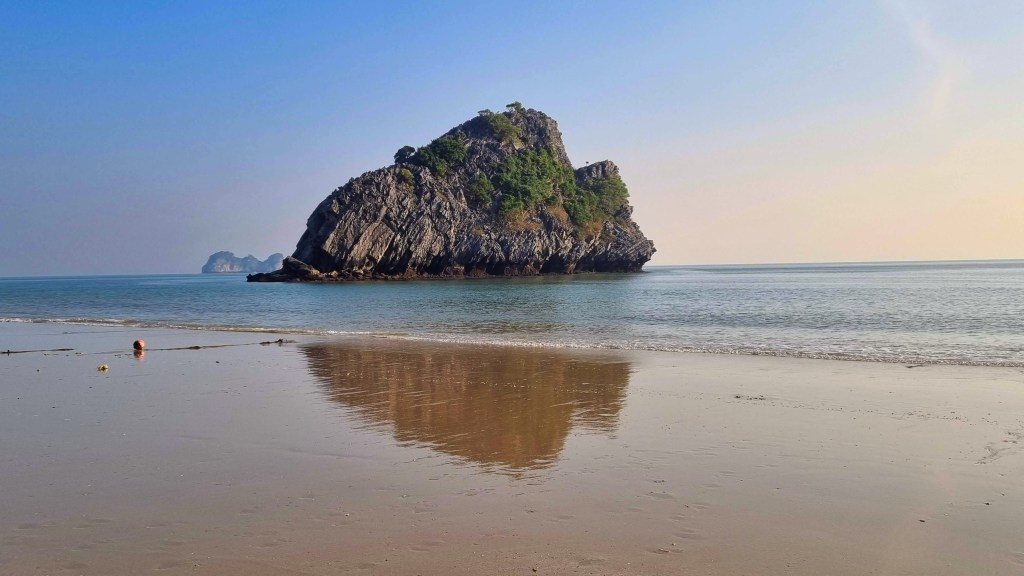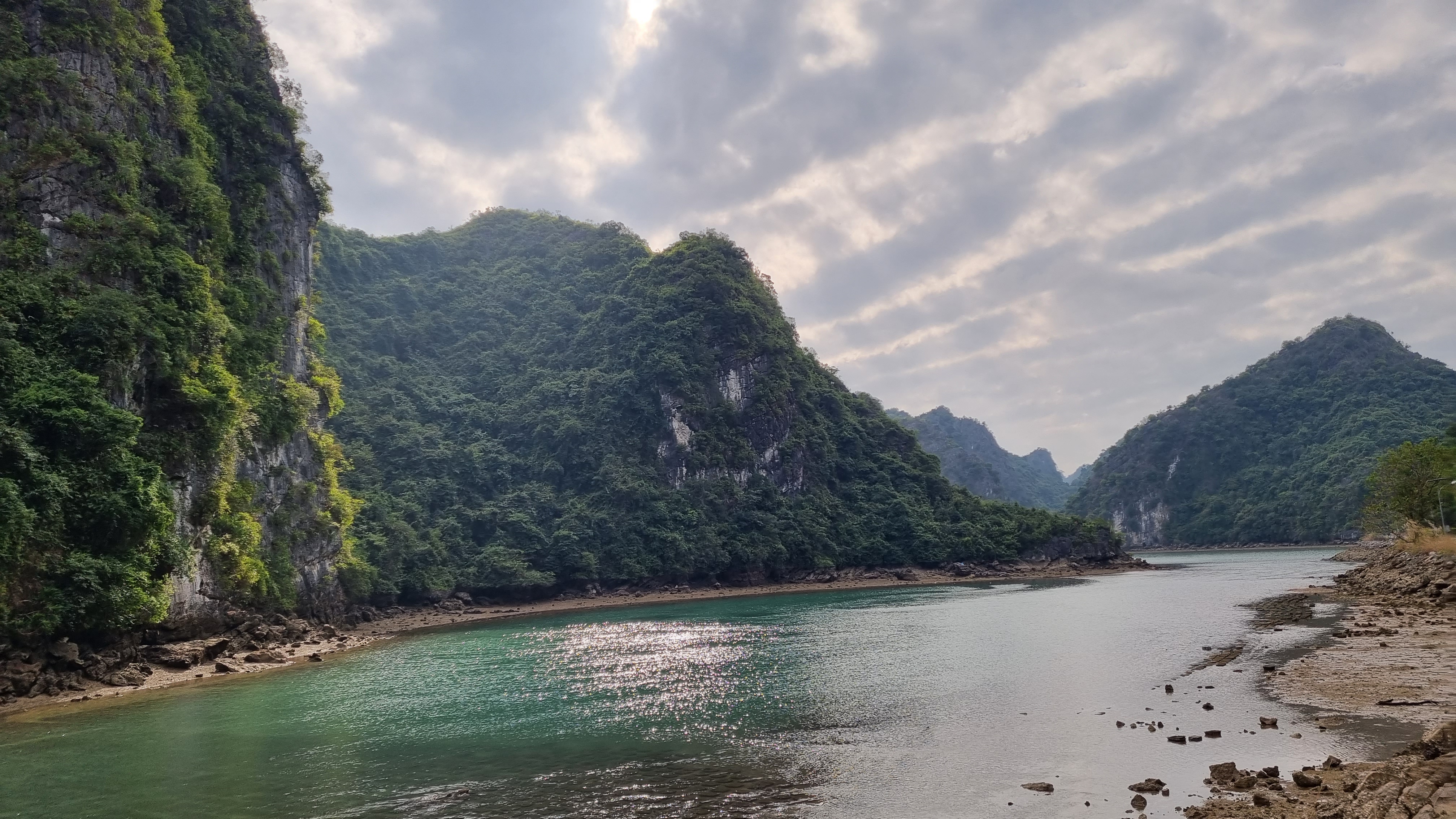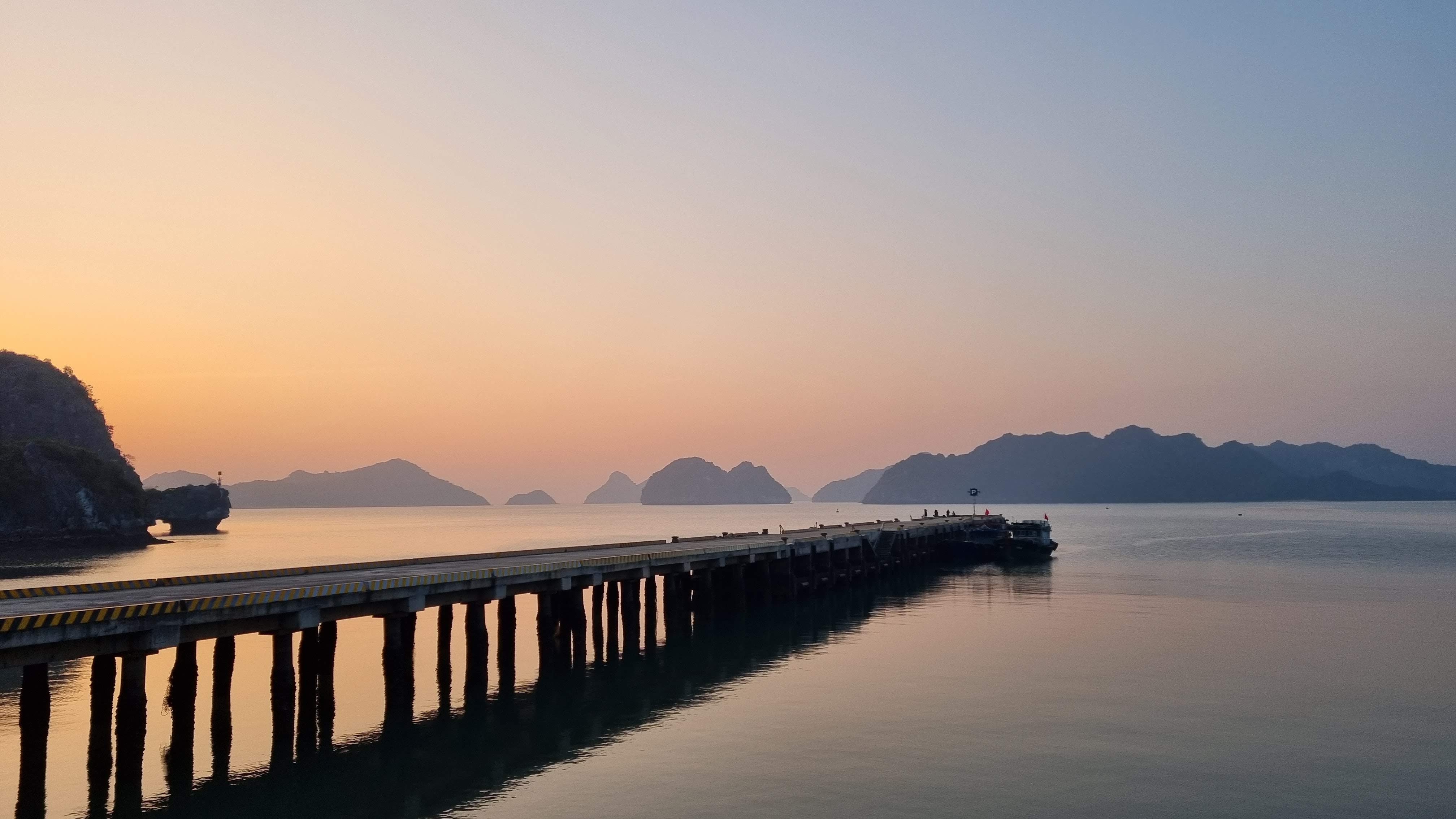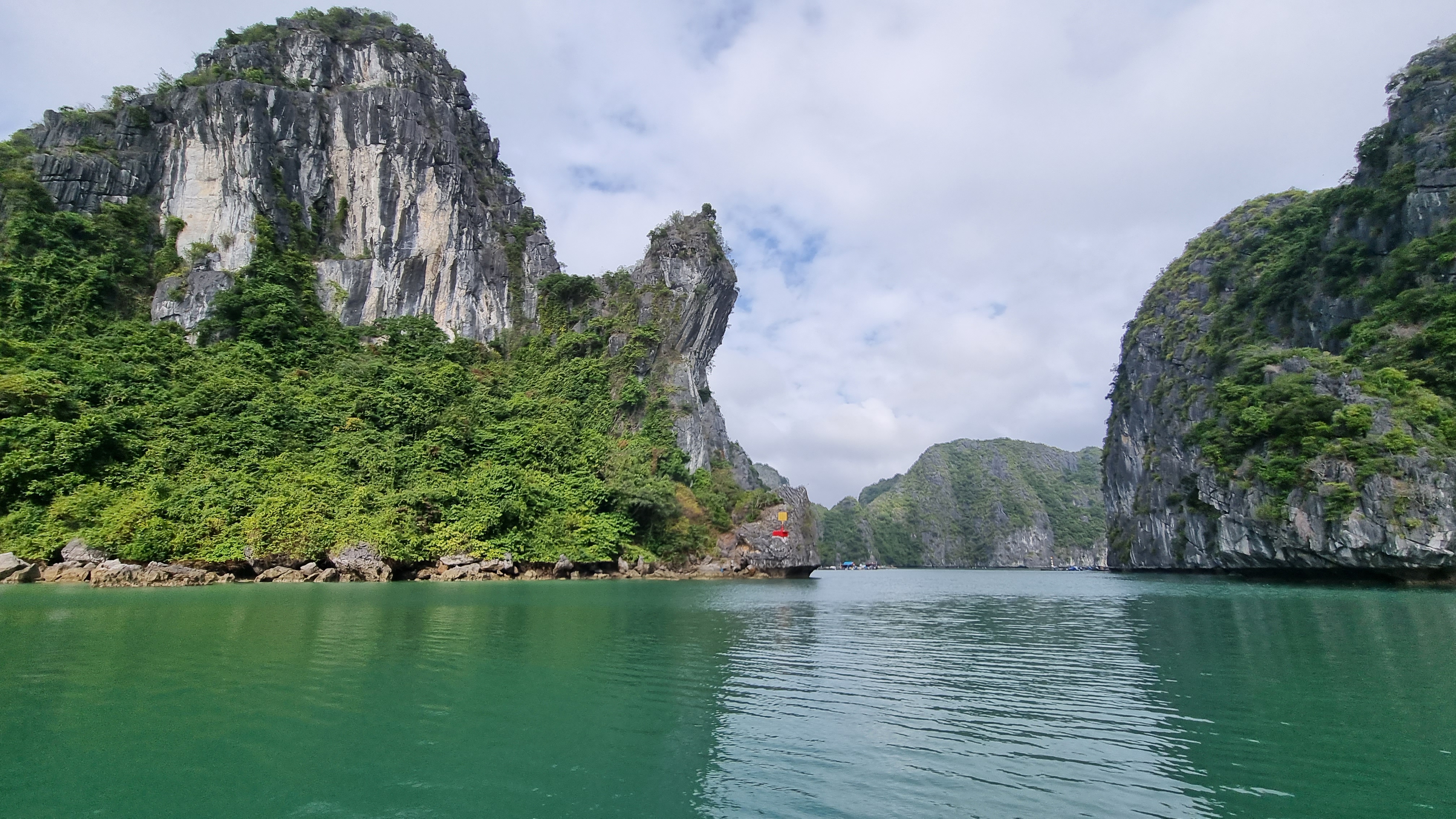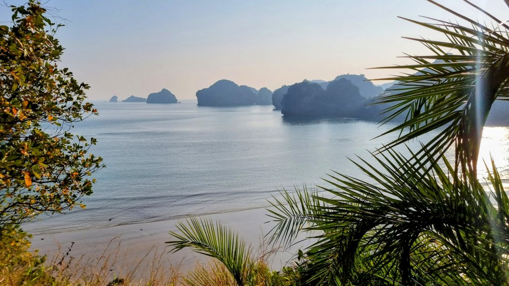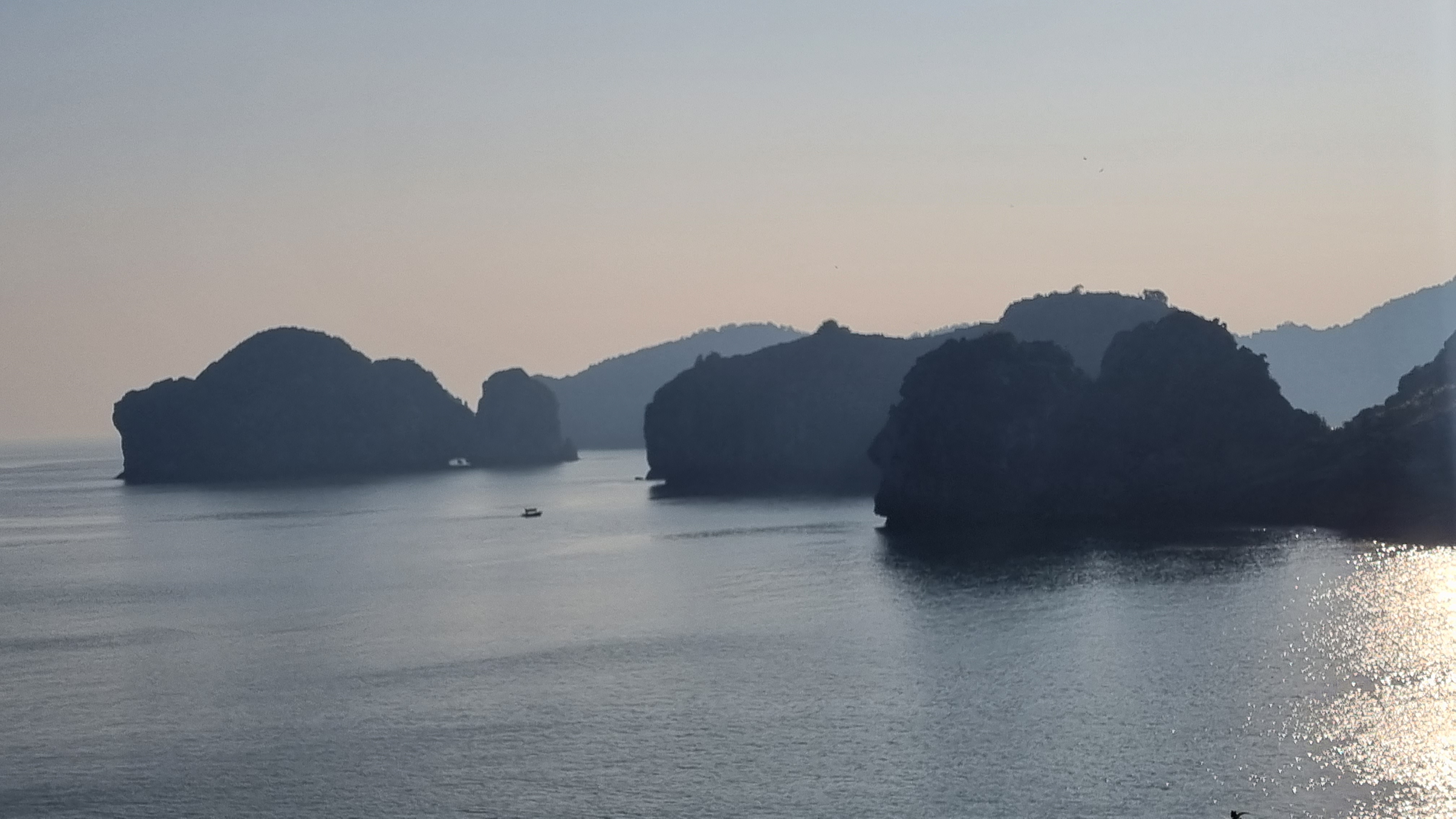 Quelques marins malins profitaient de cette absence de concurrence pour tenter de nous vendre quelques ronds dans l’eau en barque, au prix d’une croisière de luxe. Le ciel était gris et bas. En ligne d’horizon, les roches karstiques recouverts d’un tapis végétal fermaient la baie et annonçait que la représentation était close jusqu’à nouvel ordre.
