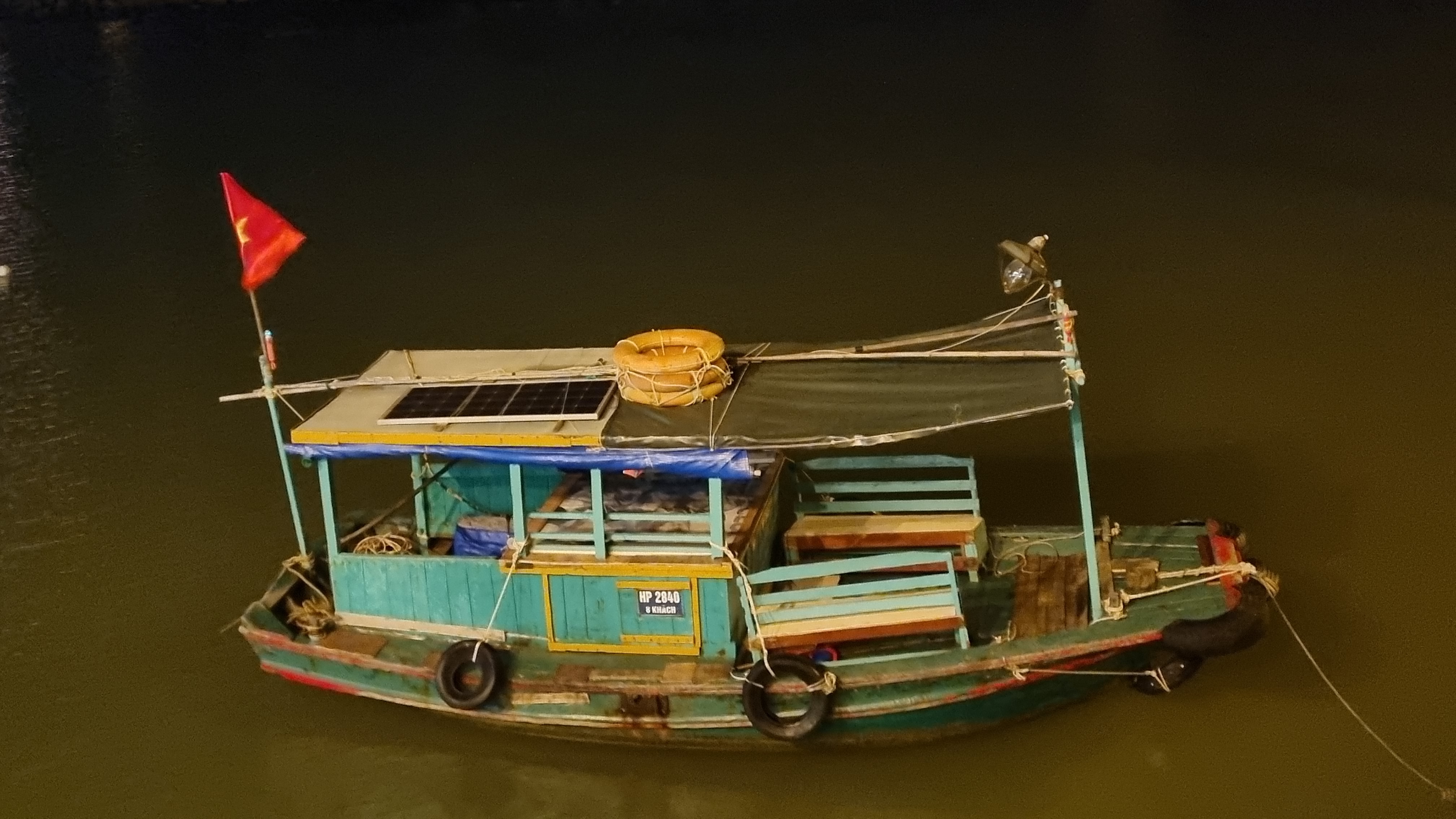 Le soir de notre arrivée, un feu d’artifice lancé sur la jetée principale à minuit, illuminait la baie de Cat ba. Si nous ne pouvions naviguer, nous avions au moins ce privilège d’investir la nouvelle année du chat dans un monde féérique. Sous la lune, la mer était d’huile, on se souhaitait la prospérité en brûlant des liasses de faux billets en offrande, dans des coupelles en métal sur le bord des trottoirs. Nous, on rêvait juste de prendre le large.