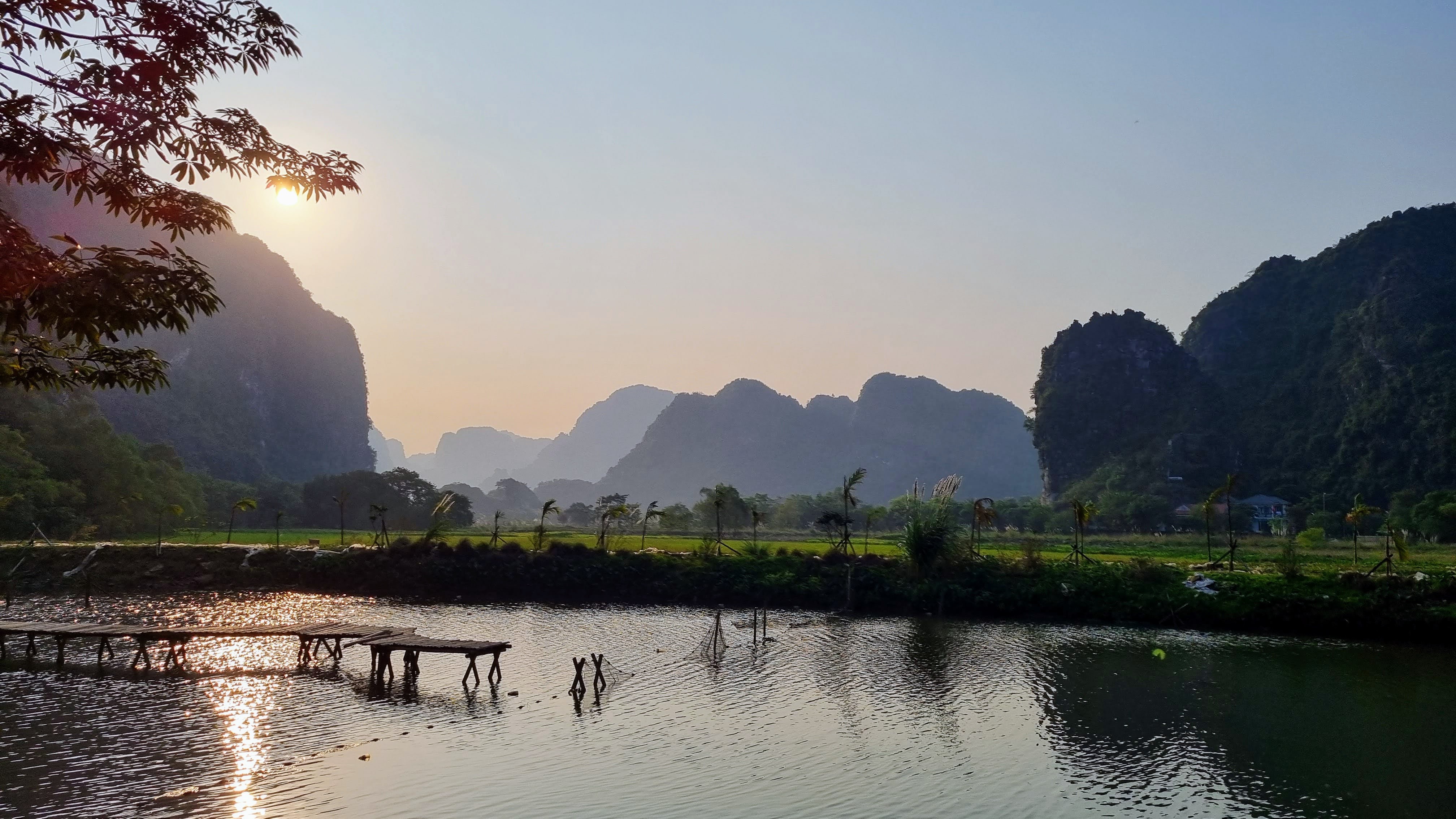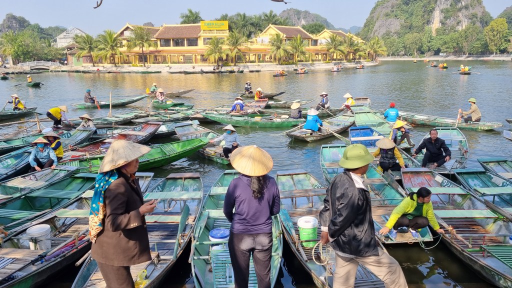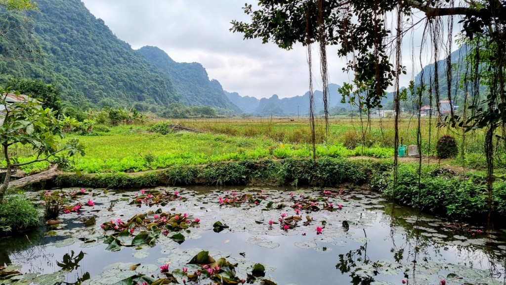 Tam Coc est une région rurale transformée encore une fois en parc touristique comme régulièrement au Vietnam. C’est le cas dans de nombreux pays mais le développement de masse sur un modèle chinois faisait des ravages dans ces lieux originellement fabuleux. Ce type d’endroit était effectivement superbe mais il était pourtant difficile d’y croiser la moindre trace d’émotion lorsqu’on l’affublait d’une machine touristique infernale. Il fallait alors chercher les failles disponibles, car elles existaient toujours, pour déceler un peu de beauté derrière une carte postale en carton mâché. Battre la campagne à pied ou à vélo restait souvent la bonne recette. On s’offrait ainsi souvent le luxe de la lenteur jusqu’à la fin du jour et y décelions pour le prix de quelques efforts, l’or et les montagnes d’émeraudes espérées. La richesse n’avait jamais trop trainé dans notre porte-monnaie mais elle s’accrochait régulièrement à nos semelles pour finir au fond de notre rétine.