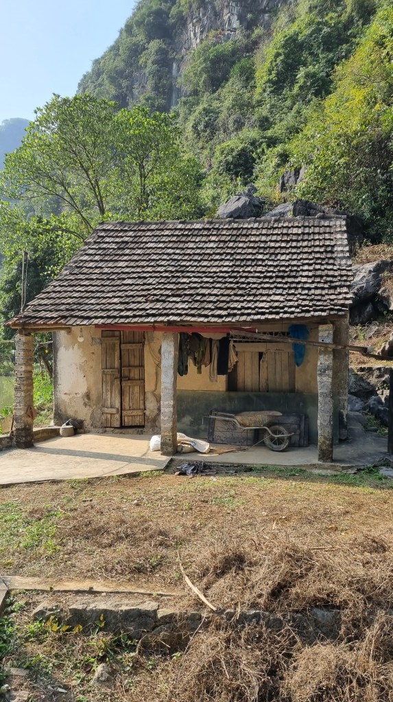 Plus loin, en milieu de journée, dans l’enchevêtrement du labyrinthe karstique, Il fallait grimper des marches creusées dans la roche pour se faire oublier du reste du monde. Nous descendions, comme souvent un peu par hasard, dans un cirque de pierres et de forêts, nimbé d’un halo de silence. Les montagnes élimées du karst, tapissées d’un vert lumineux, encerclait une prairie humide envahie par les roseaux. Au milieu coulait une rivière, comme de bien entendu. Un paysan, gardien du temple de cette nature secrète semblait y avoir scellé son destin. Il avait construit là une petite maison solitaire sur une butte de terre d’où il pouvait contempler son royaume. On le voyait nous indiquer un chemin qui serpentait à travers les broussailles, nous le suivions tandis qu’il marmonnait à voix haute quelques mots incompréhensibles, perdu dans ses pensées. Cet homme s’était peut-être égaré à force de trop vouloir s’éloigner de la compagnie de ses semblables. C’était sans doute le prix à payer mais il avait réussi un coup de maître dans l’art de disparaitre. On zigzaguait encore longtemps sur les digues de terres, conquis par ce paysage enchanteur qui appelait à s’installer définitivement. Sans doute lâches et encore animés par la curiosité des ailleurs, nous rebroussions chemin un peu plus tard, laissant là, notre homme à sa solitude. Les meilleurs coins pour se perdre sont comme pour les champignons. Chacun possède les siens dans le monde et ils ne se partagent pas.