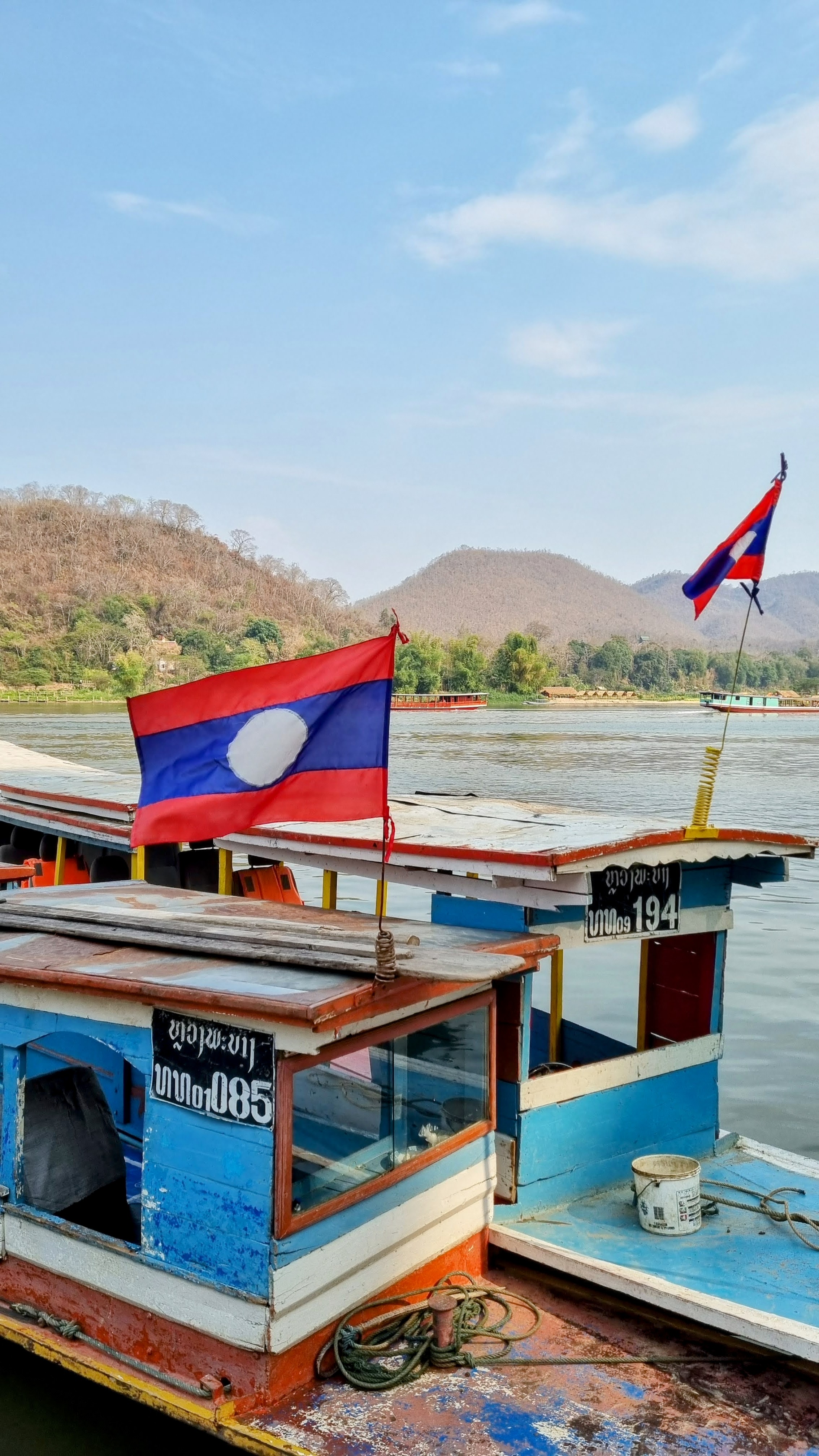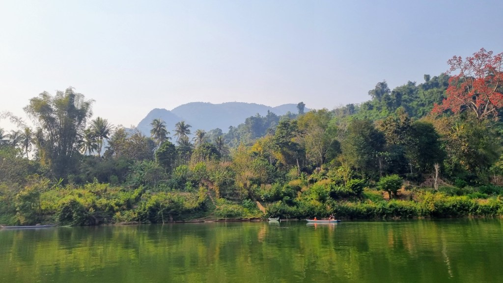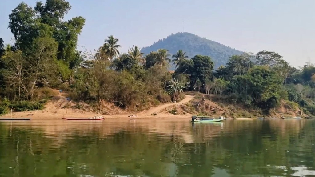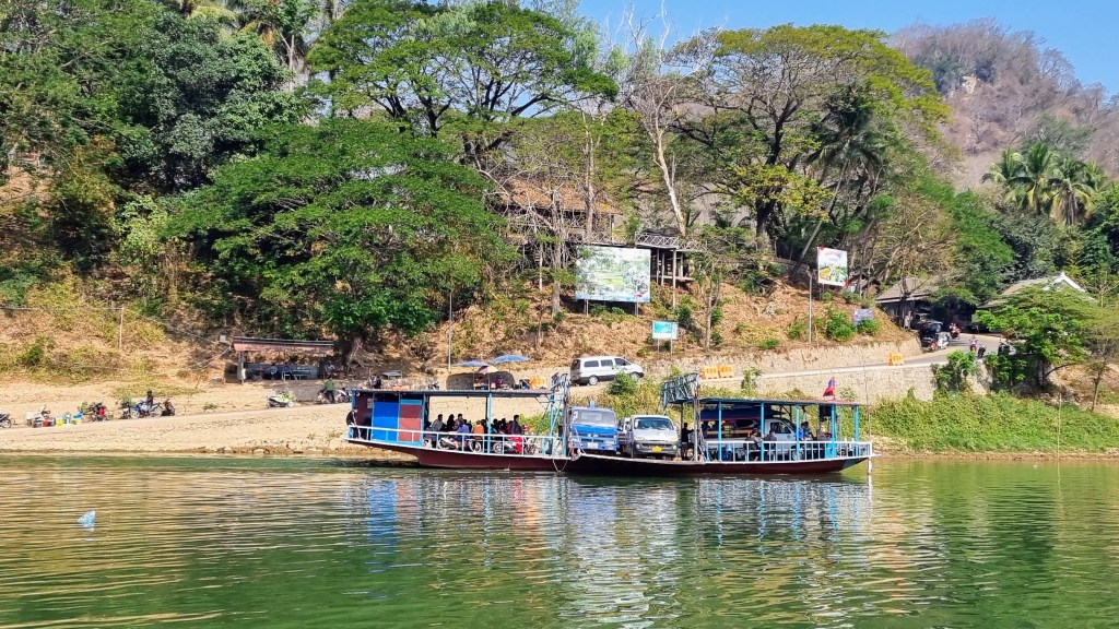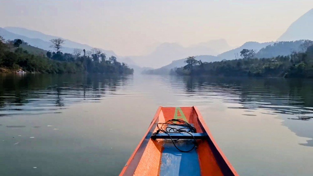 On traverse la rue d’un pas rapide en quête d’un moyen de locomotion en vue d’un éventuel retour. Il est trop tard pour rebrousser chemin à pied et nous n’avons pas rencontré sur la piste de véhicules capables de nous avancer en stop. La voie terrestre reste plutôt compromise. Nous décidons de rester sur place bien que n’ayant rien avec nous, hormis un peu d’eau et quelques billets. On a fini toutes nos bananes, et le riz aussi. Reste à dénicher dans le village un hébergement pour la nuit. En descendant sur la jetée qui mène au fleuve, nous croisons un homme qui change le cours de la journée. Il n’y a pas de bateau régulier avant demain matin, mais il nous propose les services d’un membre de sa famille pour nous convoyer jusqu’à Nong Kiaw sur une petite pirogue légère.