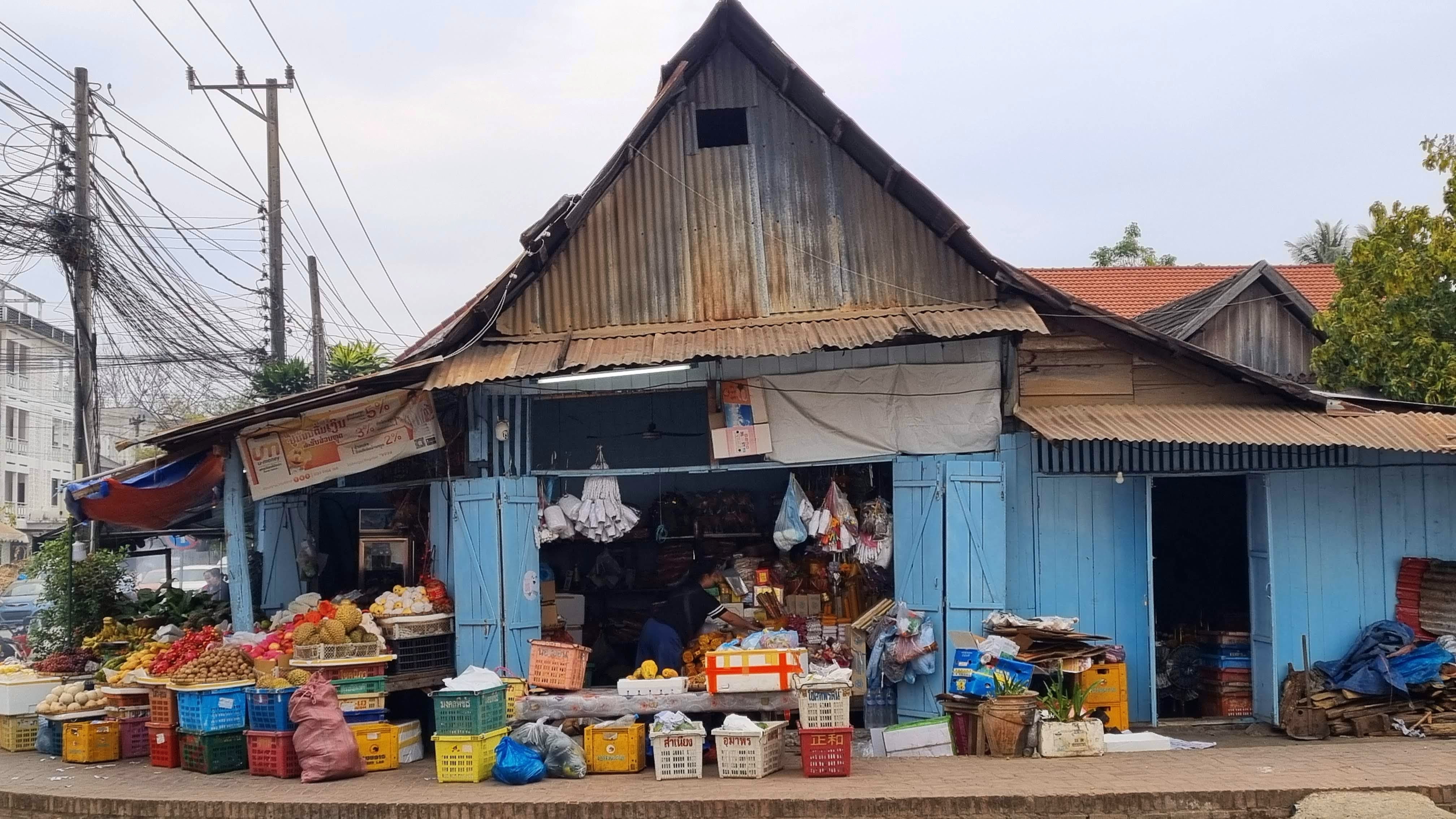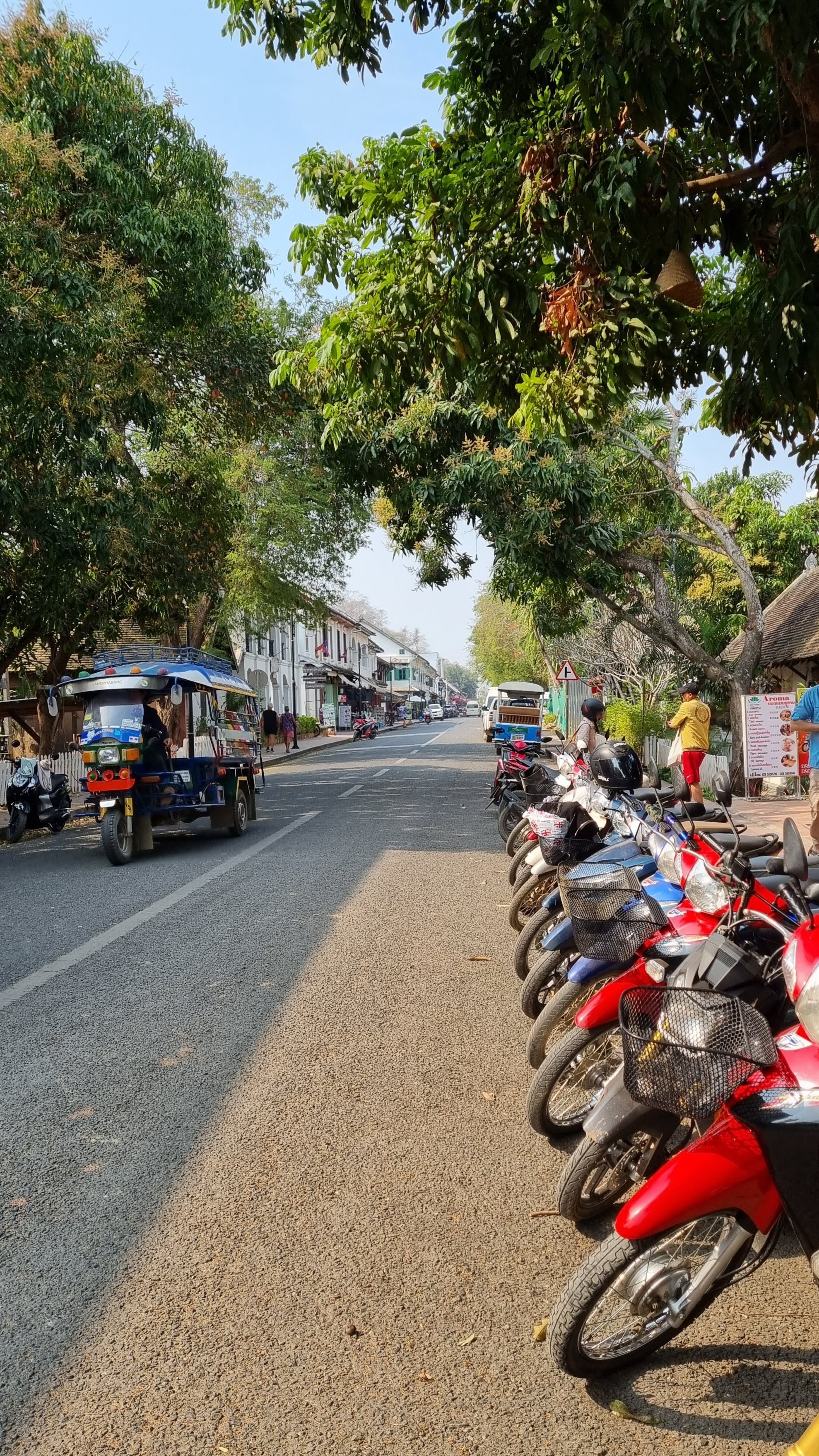 Après une trentaine de kilomètres de ruelles et de chemins, Luang Prabang nous voit de nouveau traverser ses rues, blancs de poussières, des étoiles dans les yeux et la sueur perlant sur les fronts brûlants. A cette heure de l’après-midi, la ville est déserte, les touristes somnolent dans les guesthouses, attendant tous la même heure de la soirée pour s’ébattre dans un marché de nuit folklorique sans charme. On prend la direction opposée dans la nuit. Nous vivons dans les faubourgs de la ville loin des lumières artificielles. Il y a là-bas un marché où l’on y vend du riz, des fruits et quelques beaux instants de vies.
