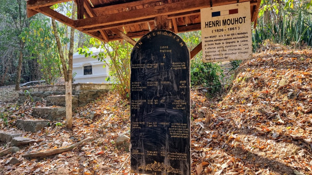 Nous irons, comme nous l’avions promis quelques jours auparavant sur les rives du Mékong à Pakbeng, visiter le cénotaphe d’Henri Mouhot. C’est un simple monument blanc posé dans une clairière à peine dégagée. En contrebas, le Nan Kham que l’explorateur remontât en son temps. L’homme y avait installé son bivouac en août 1860, accompagné de deux guides laotiens. Le paludisme doublé de la fièvre jaune le clouera définitivement en novembre 1861 à l’âge de 35 ans sous ses arbres non loin du village de Ban Phanom, à peine quelques kilomètres à l’est de Luang Prabang. Il nous avait raconté en l’espace d’une courte vie les fabuleux temples d’Angkor, croqué en quelques carnets de naturaliste éclairé la végétation des lointaines contrées d’Asie, inventorié deux ou trois scarabées et araignées encore inconnus du monde scientifique. Il nous représentait en une étincelle de vie sur terre ce que signifiait le mot « explorateur », et nous laissait en partage un goût immodéré pour l’aventure.