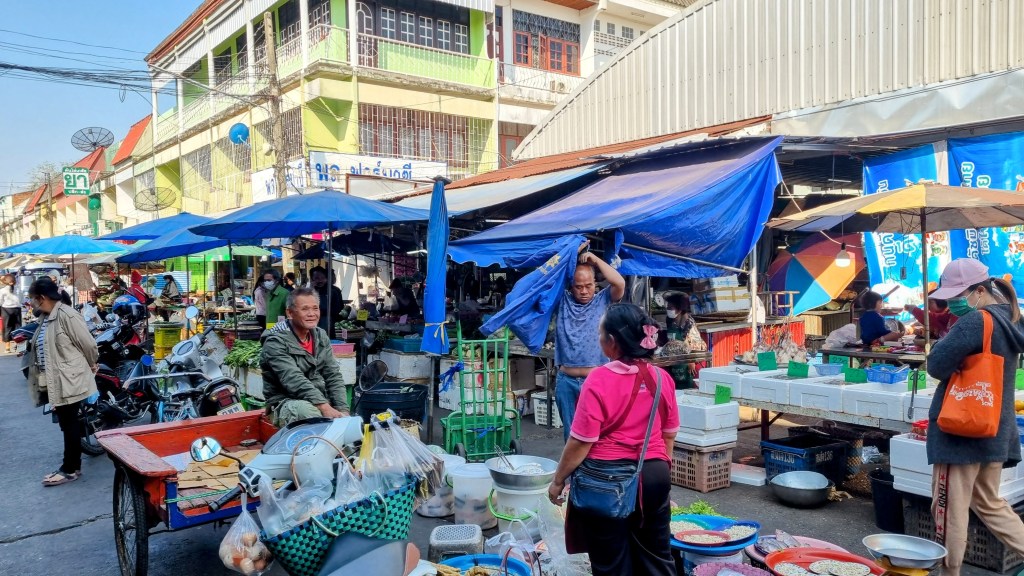 Quelques milliers d’habitants vivent ici entre ruralité et activités de commerces frontaliers avec le voisin Lao. Un marché couvert, long tunnel de métal sur le bord du fleuve, exhibe toutes sortes de marchandises à cet effet. Gamelles en plastique ou en fer blanc, denrées sucrées et fruits arrivant du sud du pays, vêtements et bijoux en or, se négocient à l’ombre des tonnelles entre les deux rives.