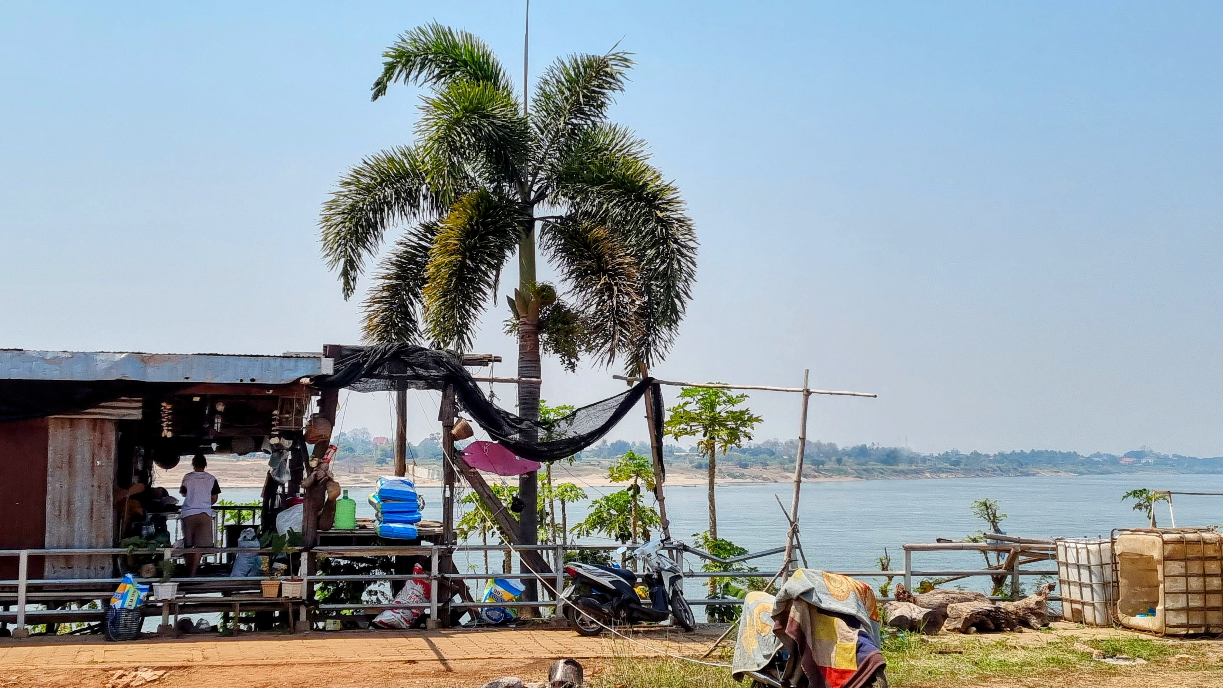 De l’autre côté de la rive, nous repérons l’ambassade américaine au Laos, bâtiment massif curieusement excentré de la capitale Vientiane. Quelques dizaines d’imposantes paraboles scrutent un ciel bavard. On tend bêtement nos téléphones en l’air pour voir si l’on peut obtenir quelques nouvelles fraiches du monde.