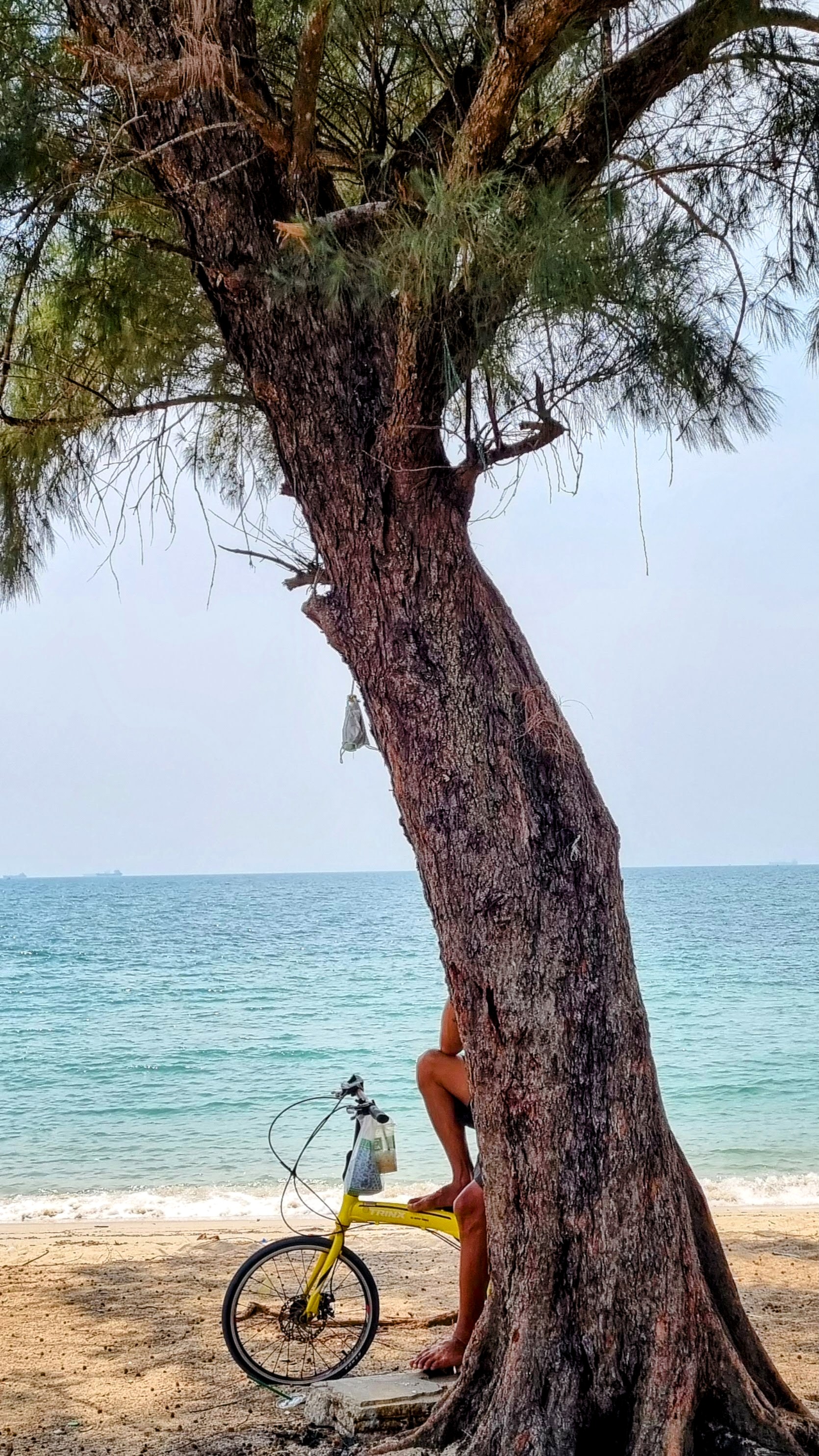 Dernier jour, un bus de nuit nous embarque. On gagne un peu de temps, comme s’il nous en manquait, pour arriver plus au sud à quelques centaines de kilomètres de Bangkok. Nous avions alors envie de voir la mer une dernière fois avant de quitter cette région du monde. Nous visons au hasard une ville du golfe de Thaïlande pour la seule raison qu’un bus s’y rend depuis Nongkaï. Rayong n’est connu pour rien de précis sinon qu’elle est la voisine d’une ville bien plus célèbre, Pattaya, où se presse à l’inverse, les révolutions estivales molles des transats de plage et des cocktails sucrés. A Rayong, il ne se passe rien de tout cela, un bus nous y dépose dans l’indifférence générale.