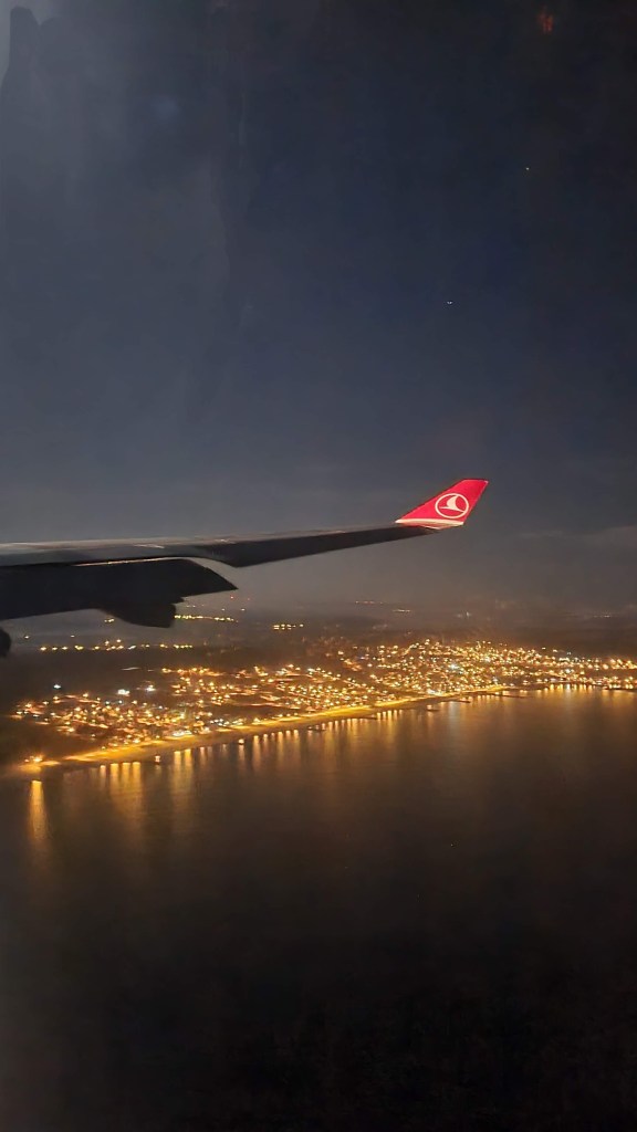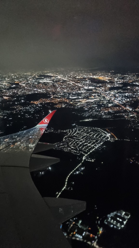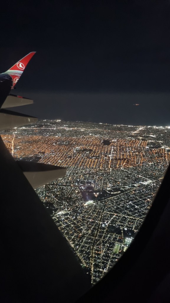 Puis dans l’avion qui bientôt nous fera prendre l’air, on verra plus tard en bas les lumières des villes scintiller dans l’obscurité.