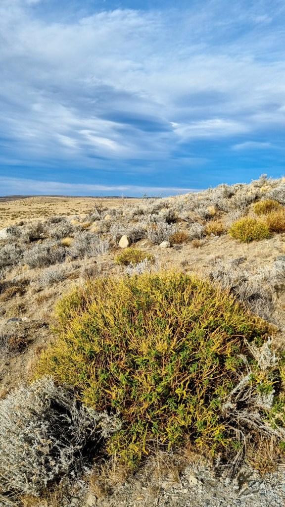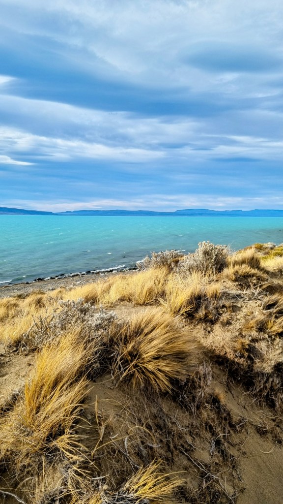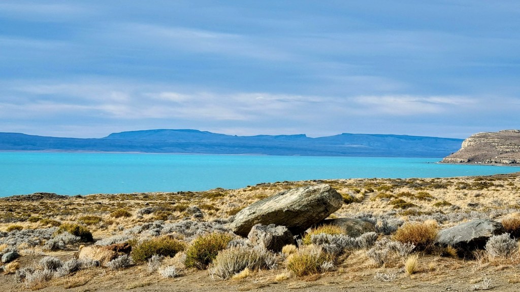 C’est une vaste plaine étirée entre l’océan Atlantique et un rude mur des Andes qui la protège des colères du Pacifique. Les contreforts montagneux abritent à leurs pieds d’immenses lacs alimentés par les glaciers. Ils prennent en fonction des saisons ou des heures de la journée, des couleurs bleues mentholées, turquoises ou bien vertes absinthes, comme si un chimiste désinhibé jouait sans cesse, au gré de ses humeurs, avec ses tubes à essais. On voit régulièrement en amont un glacier terminer sa course depuis les sommets, avancer patiemment chaque jour pour se noyer finalement, tout glaçon qu’il est, dans un cocktail menthe glaciale au cœur d’une plaine brûlée. Ces petits arrangements de la nature, entre le ciel et la terre, relèvent certainement d’une drôle de magie qu’un sorcier lunaire aurait concocté dans un chaudron ardent de Patagonie.