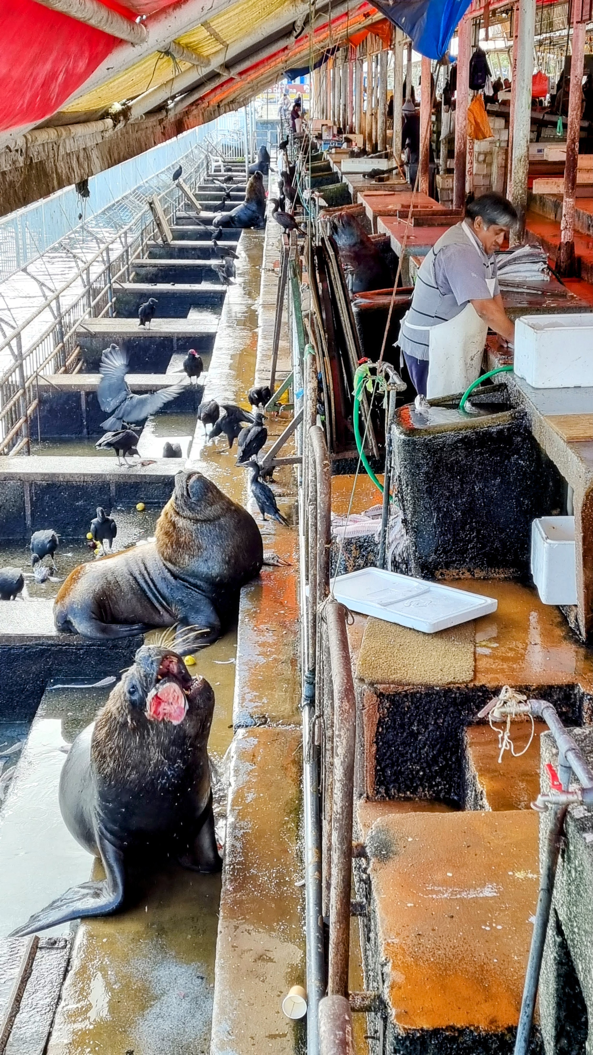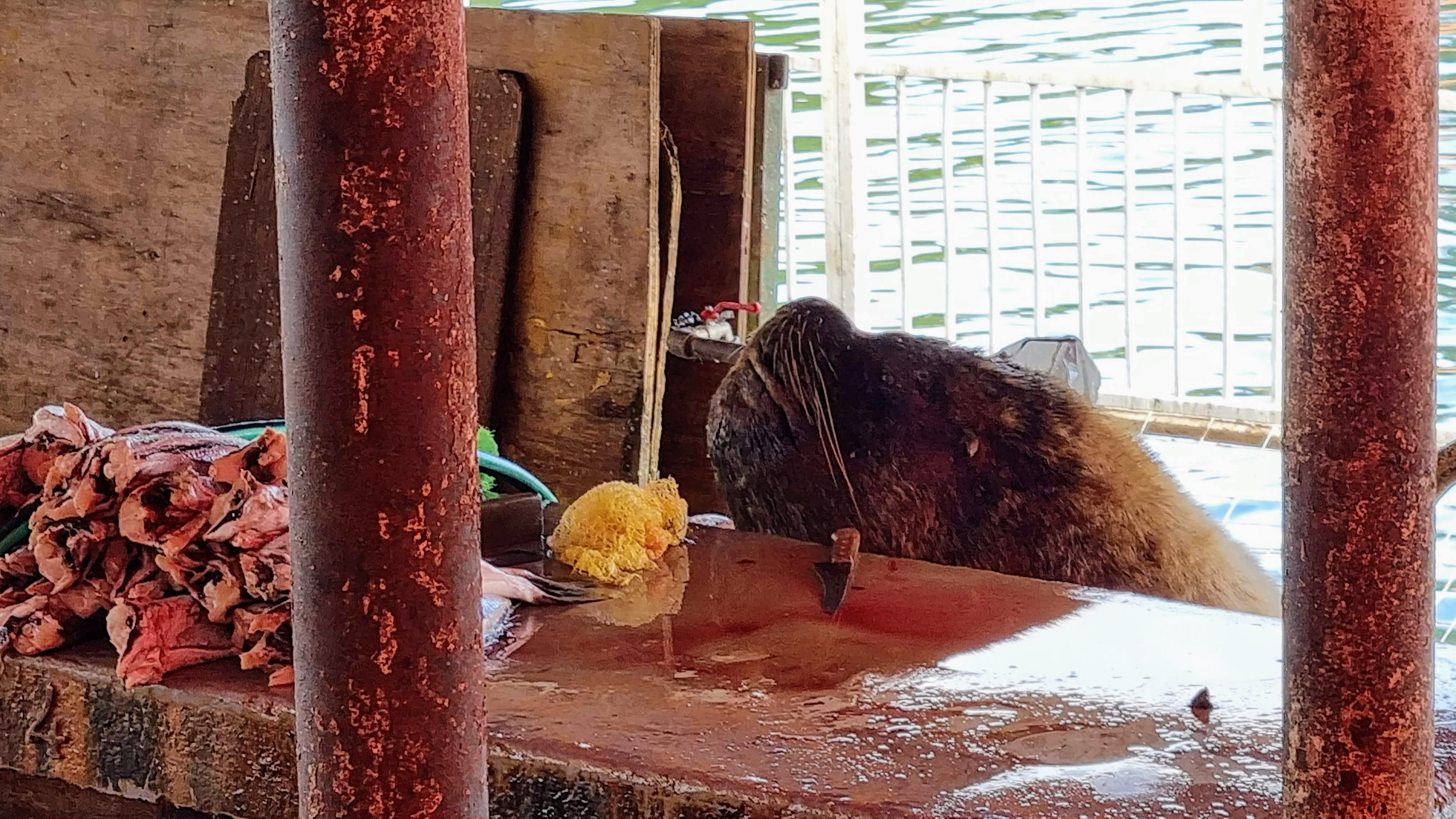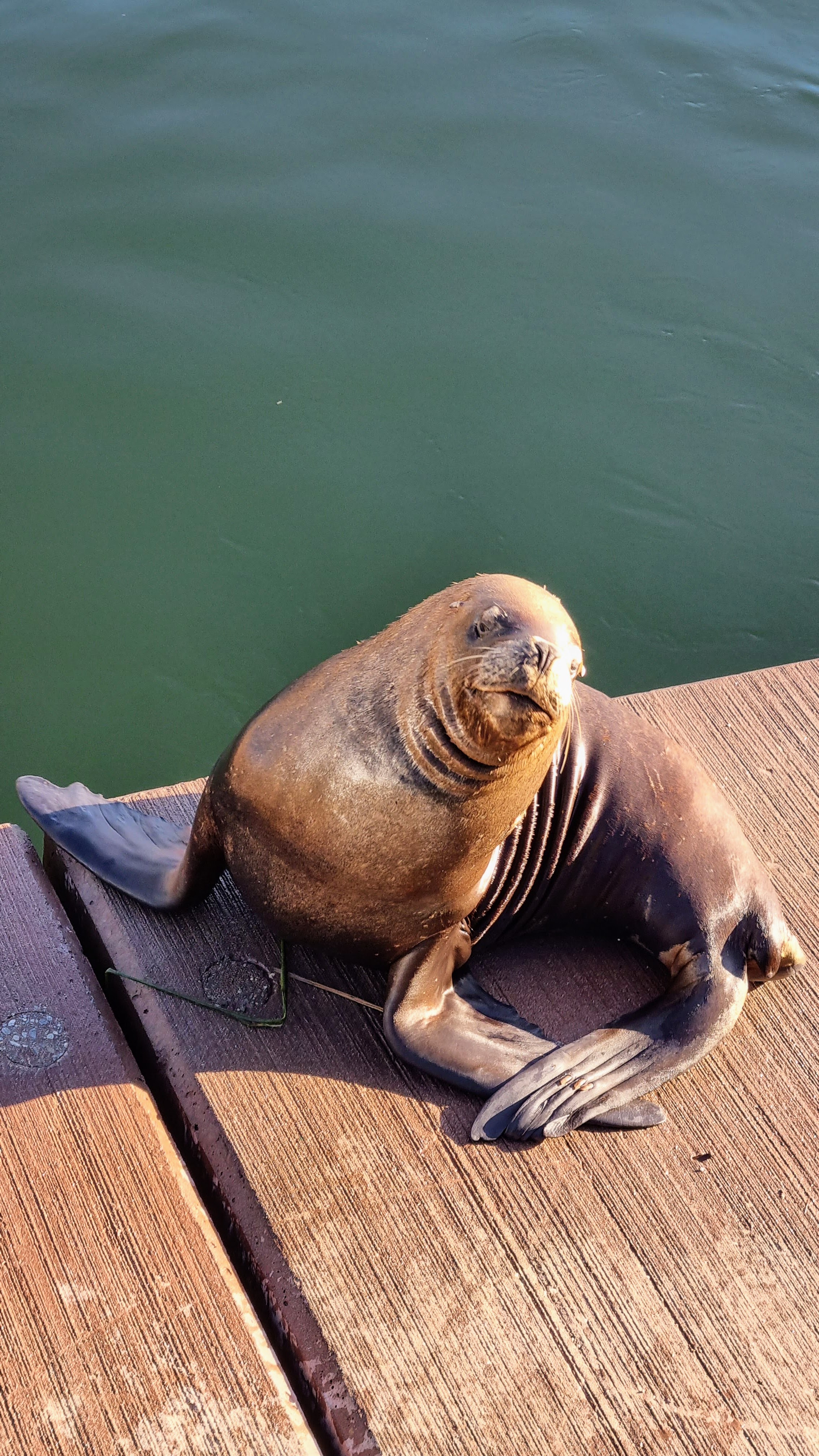 Le soir nous prenons rendez-vous avec les lions de mer qui ont élu domicile sur les terrasses de la ville au dessus de la rivière. Monstres marins, maladroits et indolents à terre, espiègles et fluides dans l’eau, ils sont une source d’observation fascinante et de gaieté pour les passants. Nous sommes ébahis par tant de puissance lorsqu’un d’entre eux ouvre la gueule au ciel, baille éhontément ou émet un cri rauque hors d’âge en élançant violemment la moitié d’un corps massif contre un congénère trop envahissant. Nous sommes attendris lorsqu’un autre sèche une crinière luisante, affalé, immobile et paresseux sous un soleil couchant.