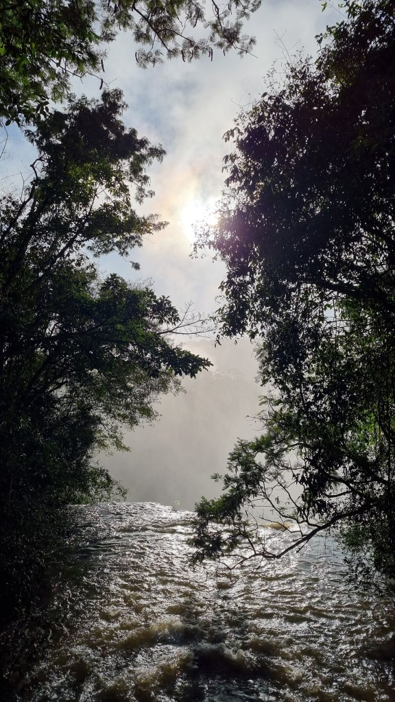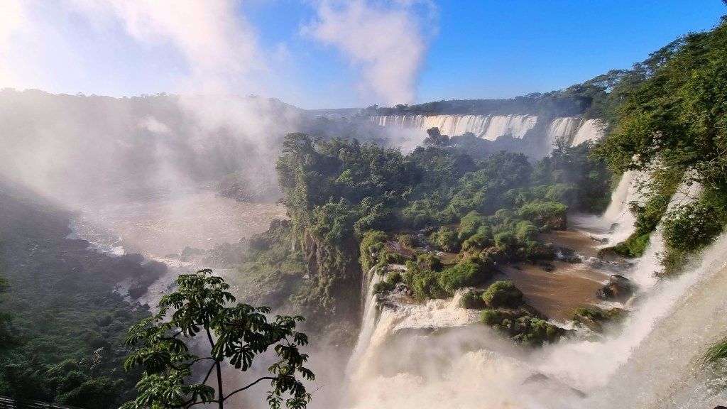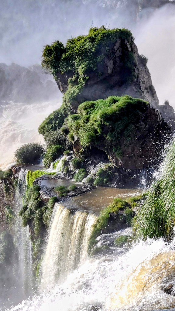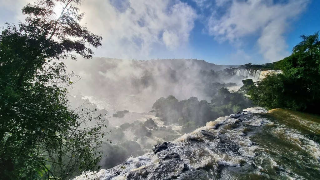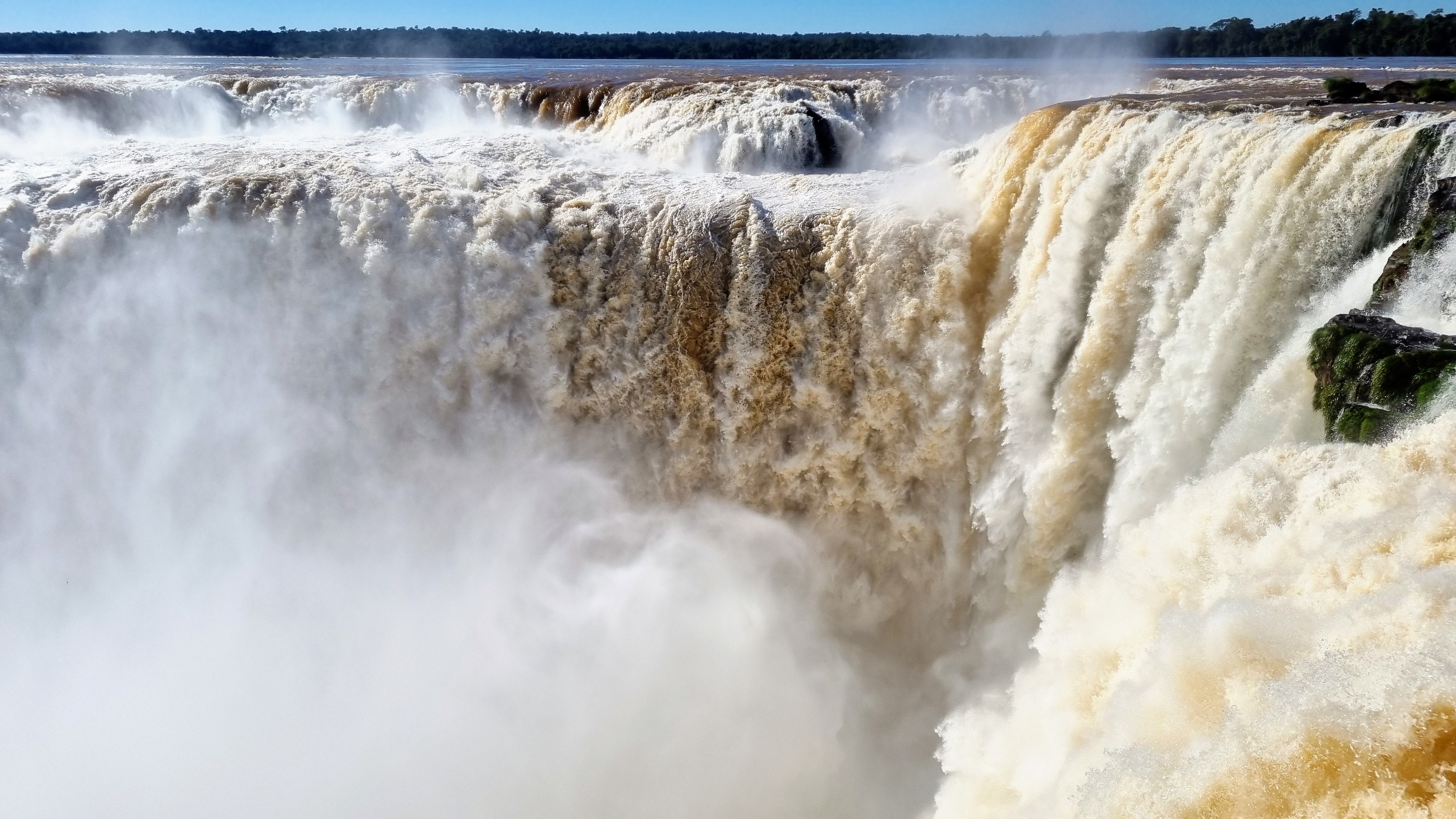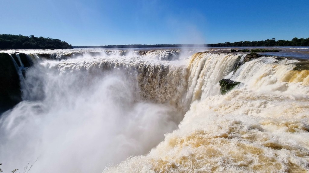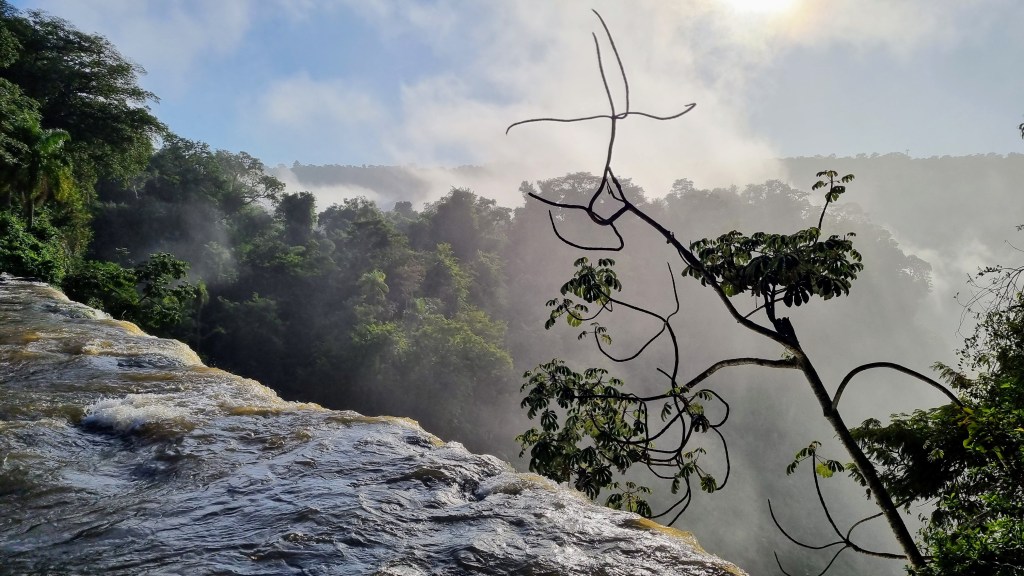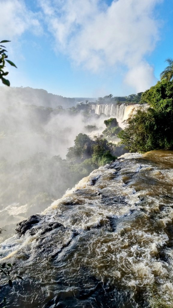 Salto Escondido, Salto San Martin, Salto Santa Maria, Salto Mbiguá, Garganta del diablo, chaque chute porte un nom qui raconte une légende, chaque déferlement d’une puissance insensée est un éclair qui s’abat violemment sur la terre à renfort de gros bouillons et de vociférations effrayantes. Ici le monde s’écroule dans une dégringolade sans fin.