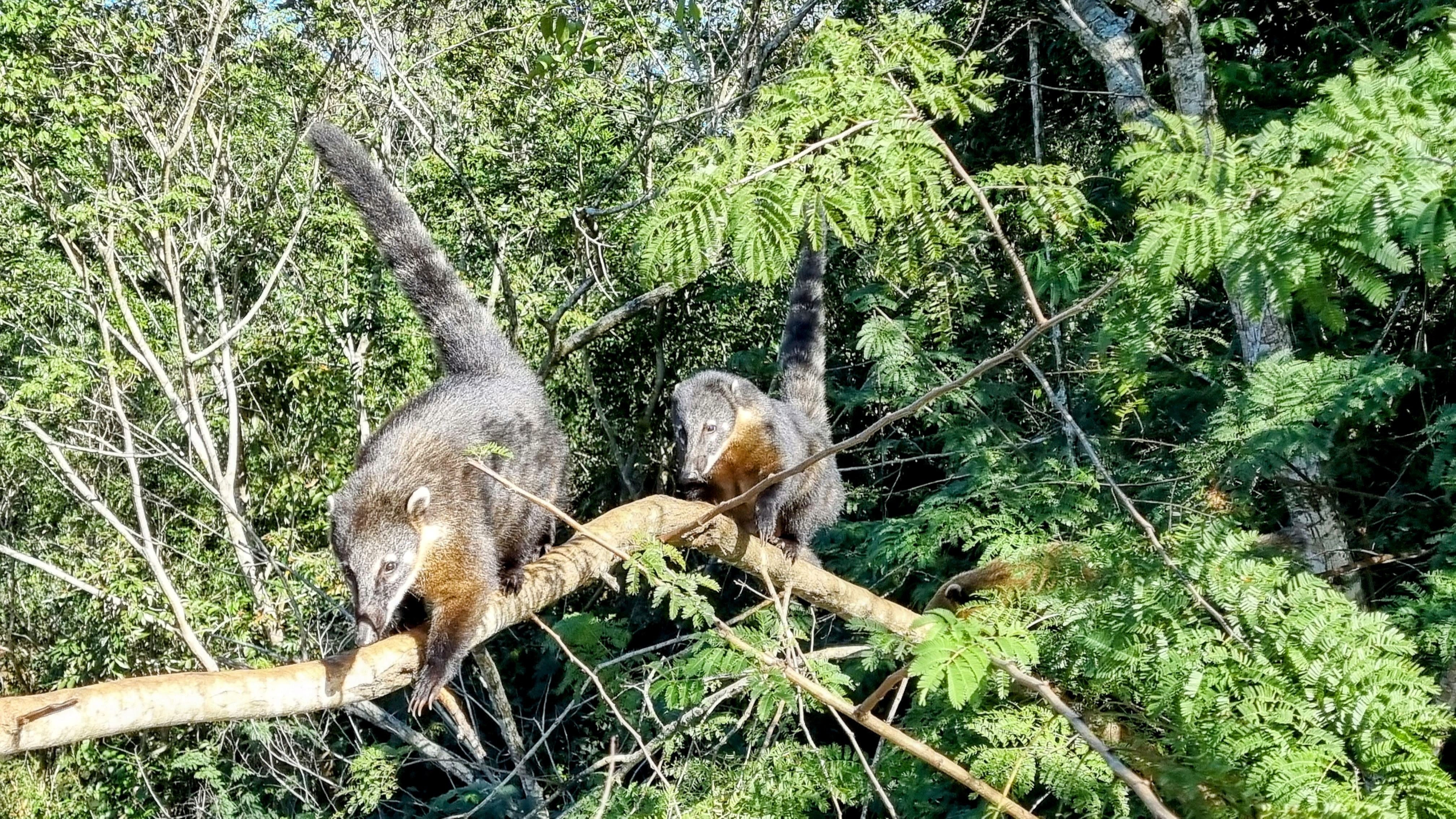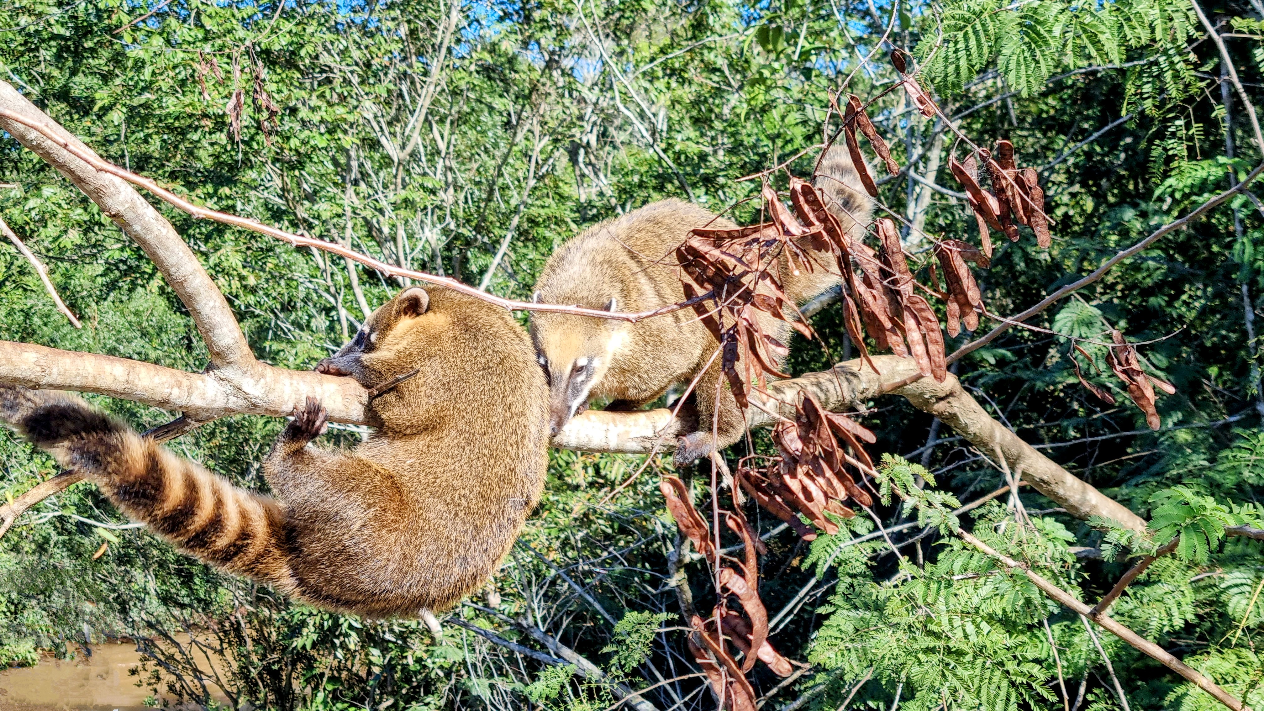 Lorsqu’enfin l’illusionniste nous rend notre liberté, la jungle offre à proximité immédiate, un apaisement nécessaire. D’ordinaire exubérante, bruyante et tapageuse, elle semble sans voix derrière le tapage des cascades. On y retrouve une sérénité, comme à la sortie d’un concert où après avoir vécu une furieuse exaltation musicale, il devient urgent de remettre un peu d’ordre dans les esprits. Des coatis passent d’un arbre à l’autre en empruntant une branche qui se plie sous le poids des funambules. A la lisière d’un chemin, un capybara stoppe net sa course, tenté un instant par un bain de soleil imprévu. La forêt s’impose toujours comme remède universel