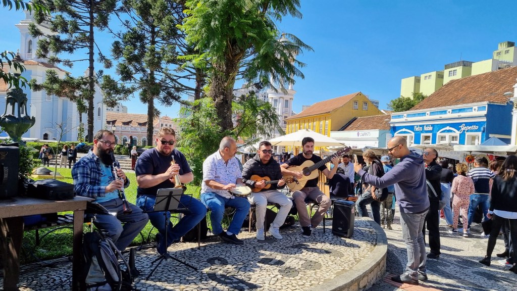 Nous sommes encore à mille mètres d’altitude mais la proximité de l’Atlantique modifie les paramètres du climat. Autour de l’agglomération, la forêt s’adoucit, se tropicalise lentement, les bananiers surgissent au milieu des fougères, les palmiers apparaissent entre les derniers pins araucaria d’altitude. S’il fait frais le matin, le soleil tape déjà sur les têtes autant que la cachaça ou le rhum blanc des comptoirs de la veille. Il est tout aussi délicieux que le sucre des papayes et la douceur des mangues présentes sur les étals. On se tropicalise nous aussi à petit feu.