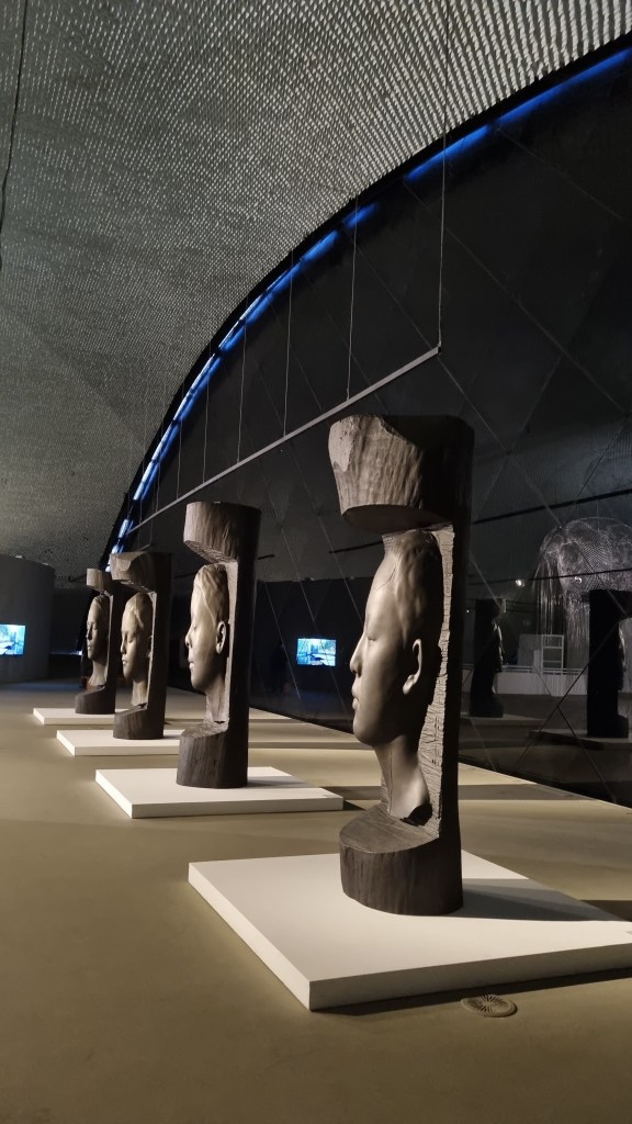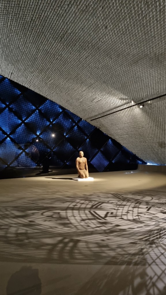 Un pas suffit à glisser doucement vers une éblouissante collection asiatique, promenant le regard de l’Inde éternelle au Vietnam révolutionnaire, puis en montant quelques escaliers jusqu’au cœur de la structure de l’œil, on se retrouve à déambuler dans une cathédrale, lumière tamisée, au milieu des œuvres d’envergure du catalan Jaume Plensa.