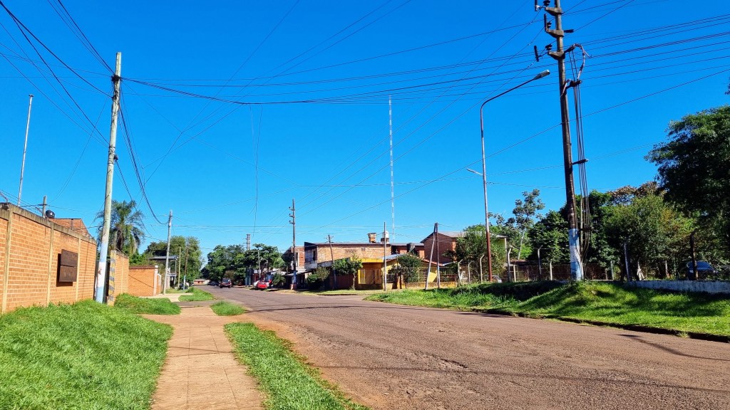 Nous sommes arrivés la veille à Puerto Iguazú, mondialement connu pour ses chutes de premier ordre, réputées pour être parmi les plus impressionnantes de la planète. L’originalité géographique de l’endroit réside dans le fait qu’il est le point de contact entre trois pays. C’est ainsi que l’Argentine, le Paraguay et le Brésil se donnent rendez-vous à l’ombre d’un coin de jungle, les pieds dans l’eau. Trafics en tout genre et tourisme transfrontalier sont les deux activités économiques majeures de la région. La rue principale est un alignement monotone de boutiques de souvenirs. Lorsqu’on s’en éloigne, la ville reprend les couleurs ordinaires du quotidien. Quelques commerces, un coiffeur, deux épiceries, des petites maisons de briques, quelques chiens errants, une vie simple qui s’égrène lentement, cernée par la forêt.