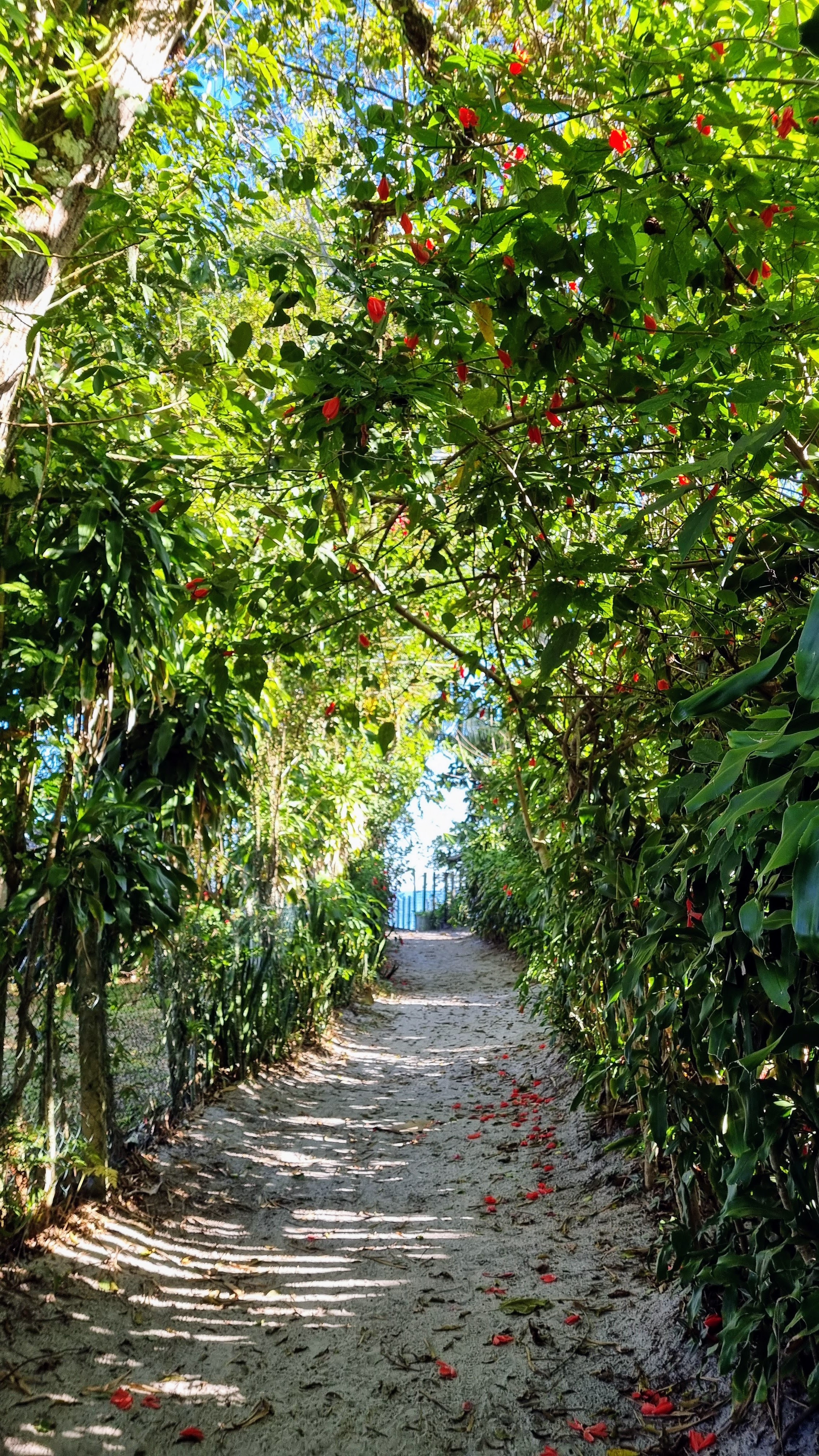 C’est une presque solitude, de celles qui n’en sont pas tout à fait parce que c’est juste bon de pouvoir les partager un peu. Le paradis, c’est une forêt bruyante qui côtoie l’océan étalé sur le sable. C’est une myriade de chants d’oiseaux colorés qui se chamaillent sur les cimes des grands arbres, se cachent sous les feuilles larges et lentes des bananiers. C’est un homme qui passe à vélo sur la plage et qui s’arrête soudain pour la millième fois devant le même paysage, étonné que chaque jour il arrive encore à s’en émerveiller. Le paradis est ce plaisir indicible impossible à dire mais que l’on ressent sans l’ombre d’un doute au plus profond de soi.