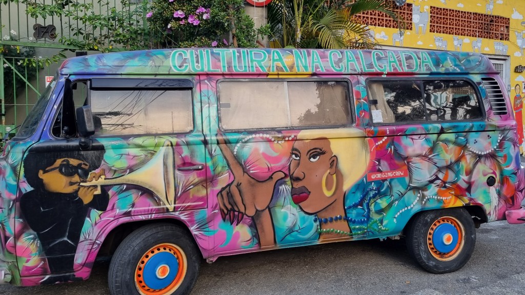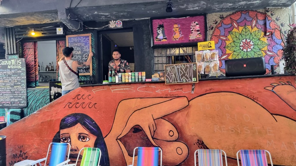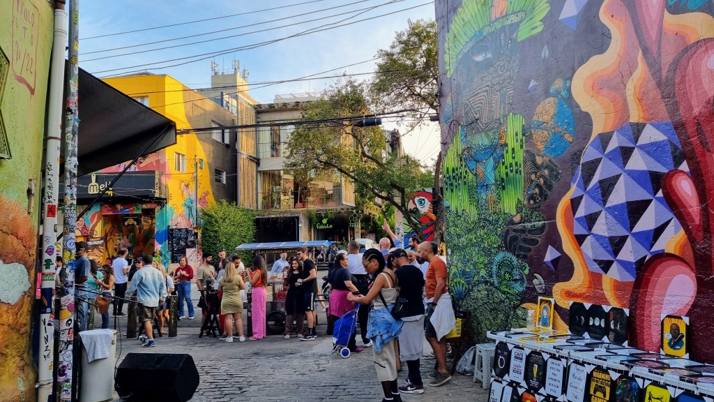 Les sacs posés, nous repartons aussitôt en fin d’après-midi en direction du plus proche quartier. Le dimanche, la rue est festive dans ce coin de la ville où les artistes se sont emparés des murs pour déposer rêves colorés et peintures décalées au milieu des hautes tours de São Paulo. A Beco do Batman, les paulistanos sortent sur les trottoirs au son d’une musique forte, au rythme de quelques pas de danse, un verre de caïpirina à la main. Et c’est une bonne manière de prendre pied dans la nouveauté.