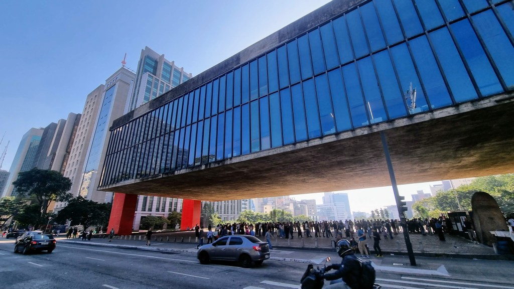Le lendemain, l’avenue principale nous amène directement au Musée d’Art de São Paulo. C’est un bâtiment en béton brut monté sur pilotis rouge qui se remarque lorsqu’on remonte Paulista, la grande avenue de la métropole.