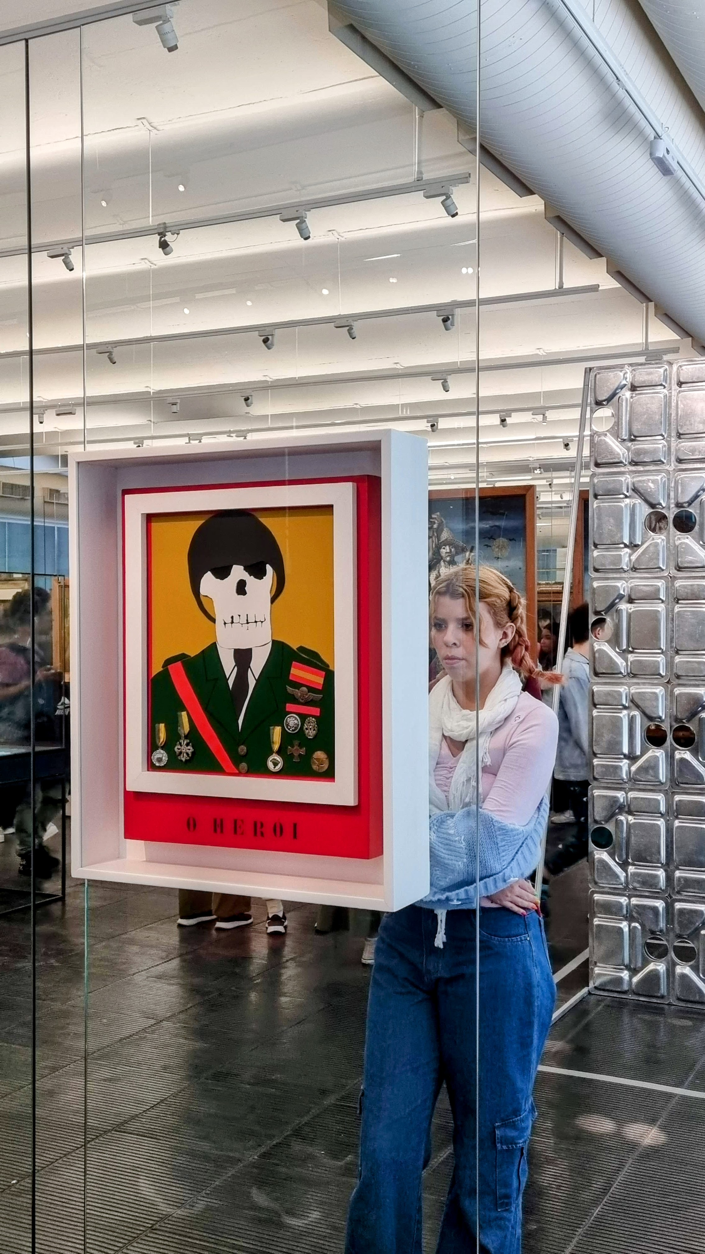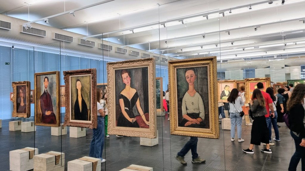 L’exposition permanente, emblématique du musée, concentre en une vaste salle toutes ses œuvres, présentées sur des vitres en verre. A mi-chemin entre le hall de gare et les rayons d’un supermarché, on déambule dans les allées au milieu des tableaux.