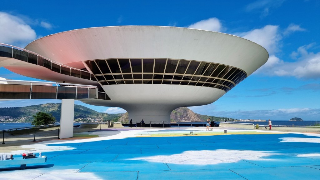 Tout au fond, l’horizon figé sous un voile de tulle marin, dessine un relief de montagnes en dégradé vert de gris. En arrière plan, on devine l’ouverture sur la baie de Guanabara.