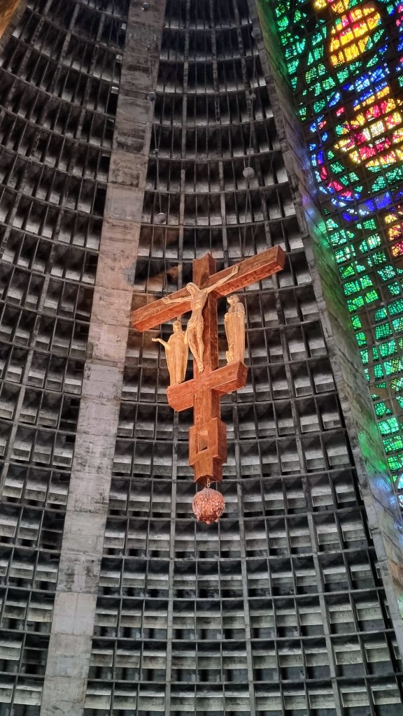 La cathédrale aux allures de centrale nucléaire n’y fait rien. On regarde les vitraux qui déchirent les murs laids de béton et inondent de soleil l’immense assemblée, souhaitant que cette lumière aide un peu à adoucir l’insupportable. Autour les favelas s’agrippent aux collines verticales, font irruption sur le plat, rendant la frontière perméable entre deux mondes qui s’observent et parfois se mélangent du bout des doigts. Rio, ville monde qui accueille tout sans la moindre gène, le goût du sublime, la perspective du beau et puis le fracas des hommes projetés contre un mur d’indifférence.