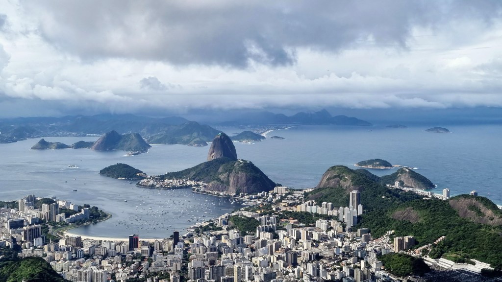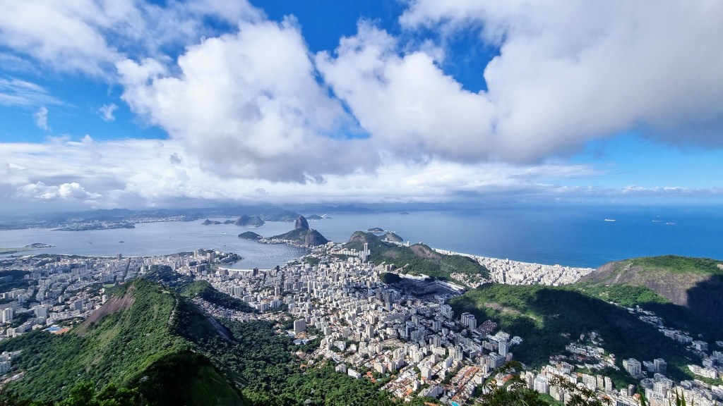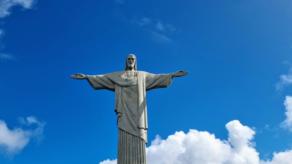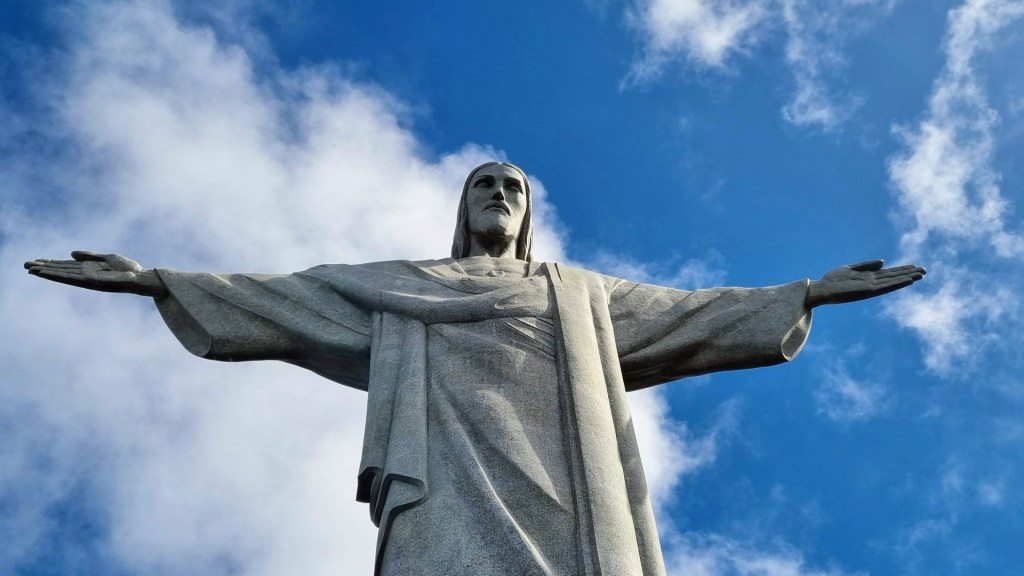 Rio n’existe pas sans le Corcovado. Montez jusqu’en haut à sept cent mètres au-dessus de la mer, fichez fermement vos pieds au sol en bas de la statue du Christ Rédempteur et levez la tête. Au milieu de quelques nuages blancs qui filent sous la voûte d’un ciel de cristal, prenez la mesure de ce que vous voyez, jaugez ce géant de béton drapé dans les plis de sa tunique.