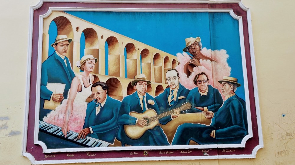 De l’autre côté de la baie à Niterói une soucoupe volante rêvée par Niemeyer est posée sur un rocher. Sur cette rive on voit Rio déployé au ras de l’eau. On ne déroge pas à la règle tacite qui s’est imposée partout dans le monde, déjeuner le plus souvent possible dans les meilleurs restaurant du coin, à hauteur du sol. On trouve la perle étoilée sous forme de quelques planches de bois posées sur le bord du trottoir face à la plage. Assis sur notre estrade de guingois, le pain sur les genoux, on se demande à quoi peut bien servir une chaise et une nappe. Rio vit au loin sous nos yeux. C’est troublant comme la réalité arrive parfois à surpasser les images fantasmées qui défilaient alors dans nos rêves un peu dingues. Les fesses posées sur le sable dans un short élimé, le regard un peu humide et la peau piquée de soleil, croquer dans une poire fraîche et sucrée sous le vent marin qui porte jusqu’à nous les lueurs de Rio. N’en rajoutez pas, c’est beau même sans un mot.