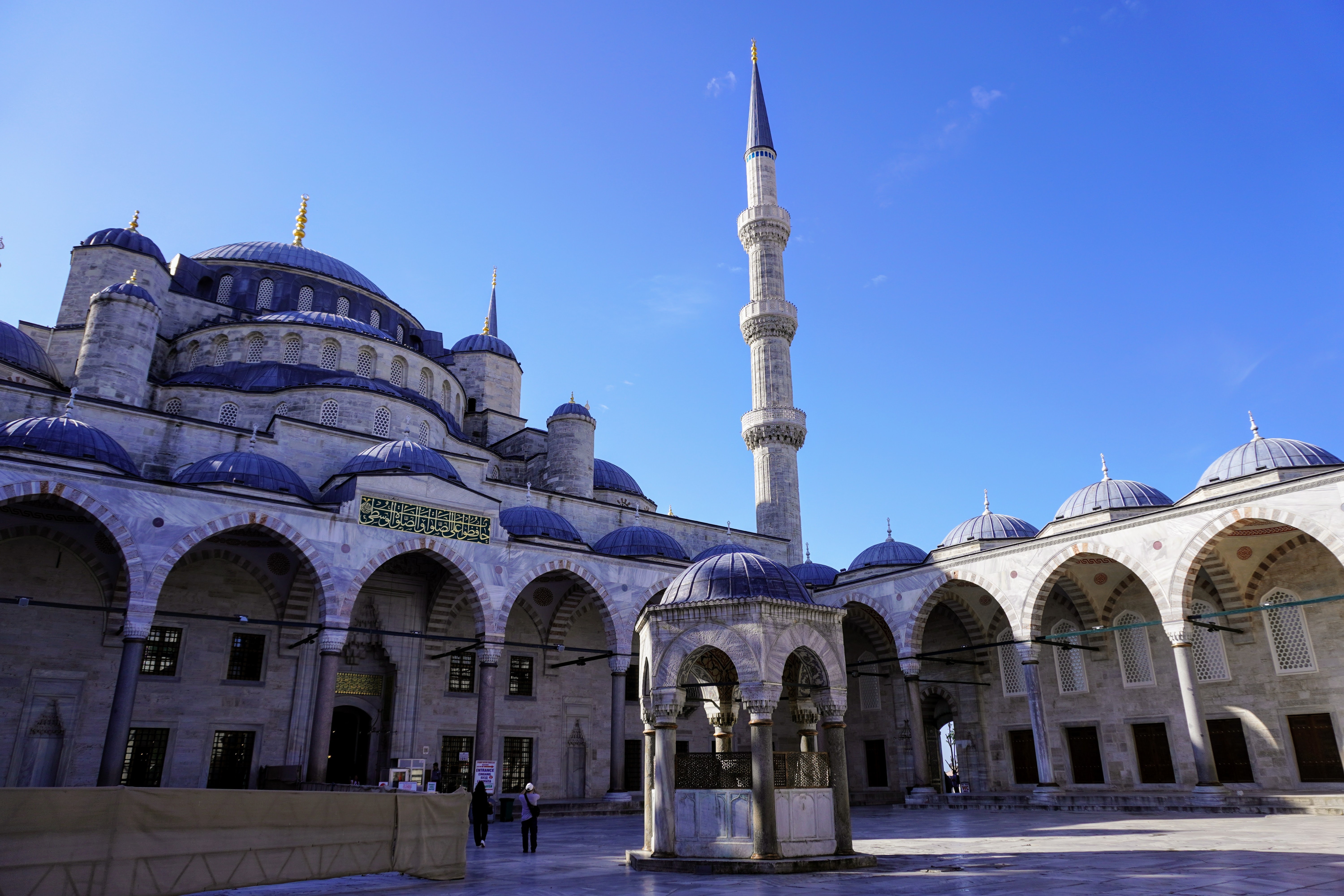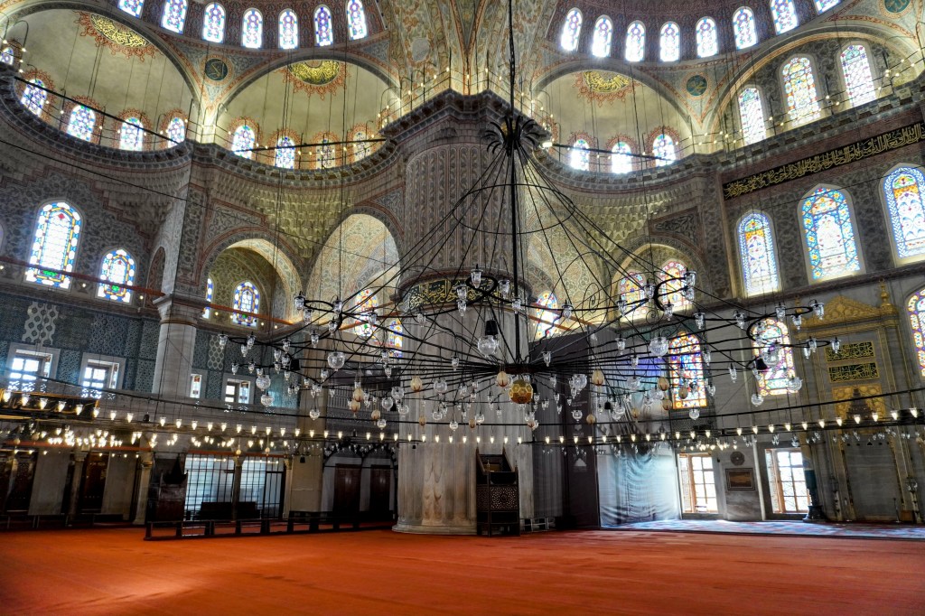 Le matin avant que pèlerins et touristes n’envahissent le quartier de Sultanahmet, on se hâte de se faufiler dans la mosquée bleue. Avancée solitaire et silencieuse.