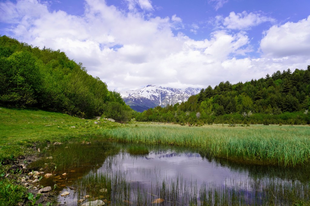 Ce matin, la météo clémente nous permet de monter jusqu’aux lacs Koruldi situés sur la ligne de démarcation russe à 2700 mètres d’altitude. A la sortie du village, un premier sentier trace presque droit au milieu des sapins et donne le ton de la journée. Nul lacet pour adoucir la pente, on souffle dur, les mollets tirent et nous sommes heureux de retrouver les verticales parce qu’en levant les yeux, derrière le voile de sueur, il semble que tout s’éclaire.