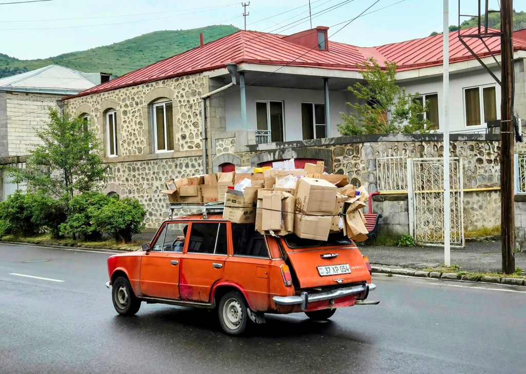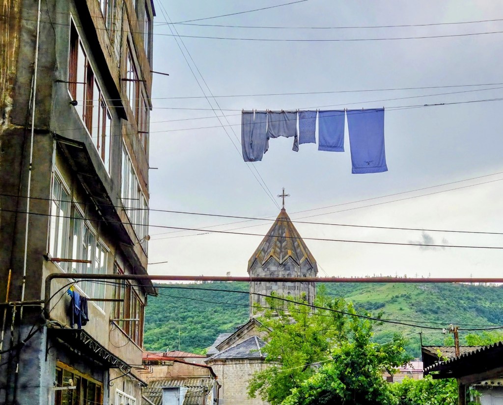 Goris est une bourgade sage, presque oubliée à l’autre bout, au sud de l’Arménie. Il y a peu, la ville avait pourtant perdu sa douceur de vivre et se retrouvait en 2020 en première ligne du conflit du Haut-Karabagh. Lorsque l’enclave autonome céda face à l’Azerbaïdjan, 100 000 réfugiés déferlèrent sur Goris, déboulant il y a deux ans par le corridor de Latchine, abandonnant dans l’urgence, maisons et biens. Ce qu’il restait de leurs vies rentrait dans le coffre d’une vieille Lada 1300SL. 2500 ans de présence arménienne dans les montagnes du Haut-Karabagh s’évanouissait dans le chaos de la guerre pour finir sous les tentes de la croix rouge campées sur la place de Goris.