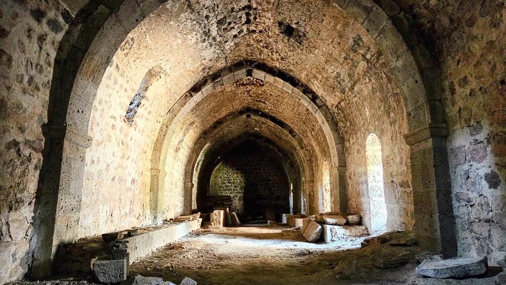 Confronté aux invasions successives seljoukide puis timouride d’Asie centrale, il est pillé, incendié et dépossédé tout au long de son histoire, ses hautes murailles n’empêchant en rien l’appétit conquérant des riches empires se succédant dans la région. Tatev connait une renaissance au XVe siècle malgré un autre pillage, perse cette fois, pour finalement passer sous l’autorité tsariste russe en 1836. On a beau être planqué au bout du monde, niché sur un promontoir entre deux montagnes, l’Histoire est toujours à toquer à votre porte, même lourde et blindée.