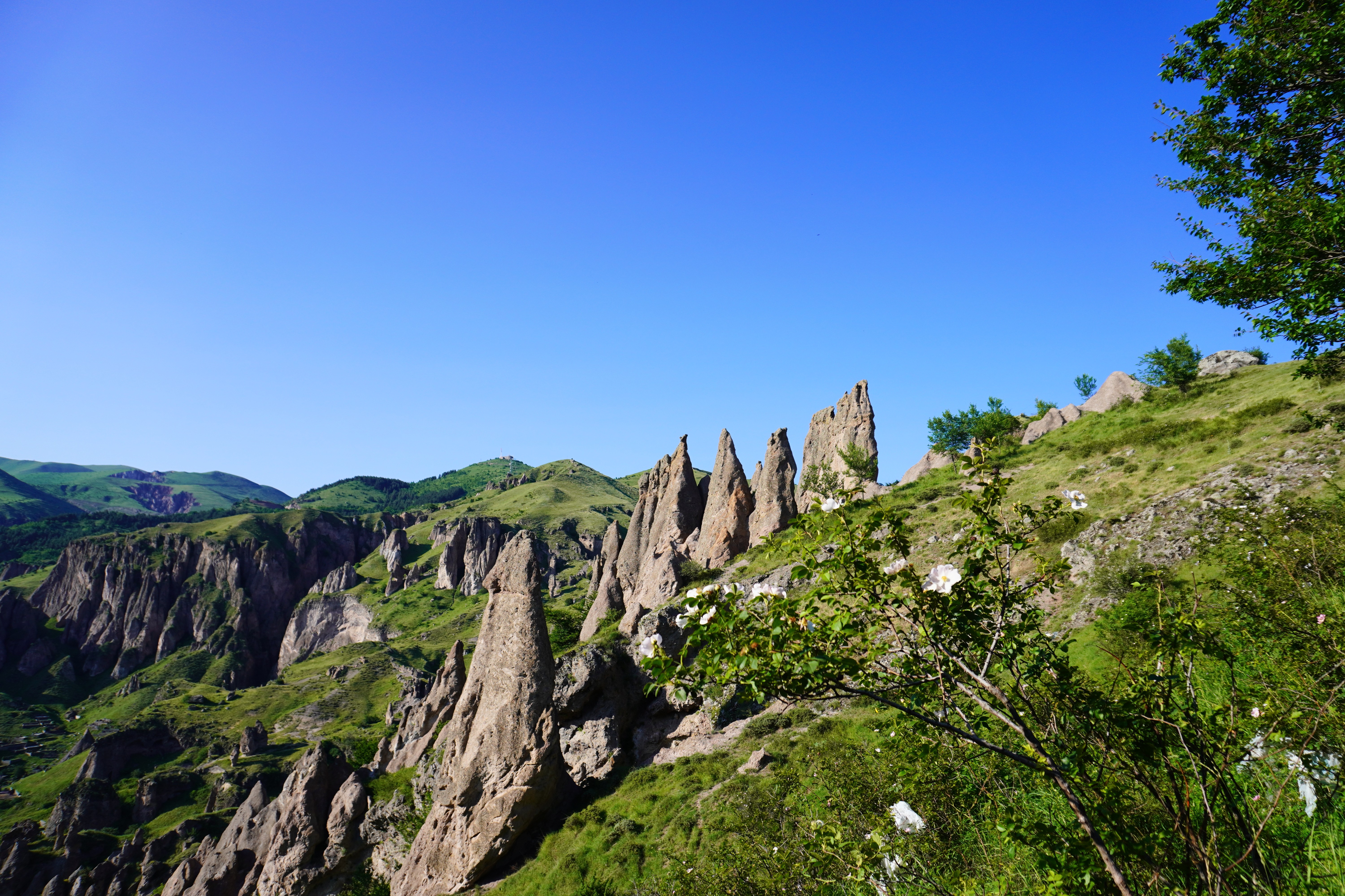 Tatev est un havre de paix posé sur un piton rocheux. Tout autour, les champs sont emplis du bourdonnement des insectes et les fleurs sauvages en tapissent l’horizon. Depuis la falaise du monastère une cascade blanche s’écroule de toute ses forces jusqu’à l’ermitage niché en fond de vallée. Là, vit un moine en robe noire, coiffé d’un stetson de cowboy. Il est penché sur ses plants de haricots toute la sainte journée. Et quand il lève la tête, la montagne toute entière témoigne de la beauté du monde.