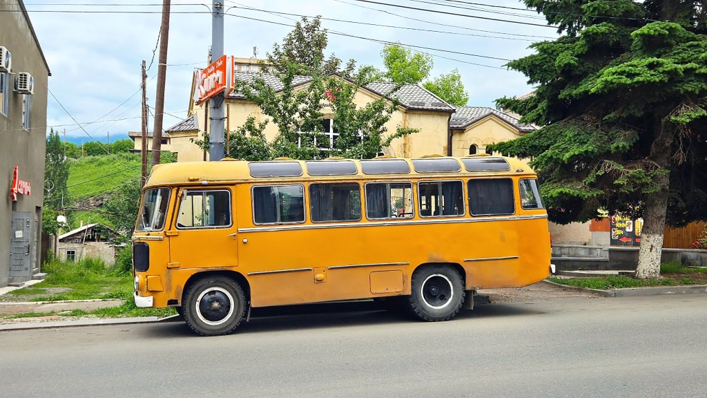 La route est un défilé d’indestructibles automobiles Lada comme on en avait rarement vu autant jusqu’à présent et sur lesquelles le temps n’a plus de prise depuis cinquante ans. La caisse d’antan aux angles saillants refuse la casse, quitte à traîner dans les côtes en crachant une suie noire épaisse de temps à autre. Des camionnettes Uaz 452, indispensables compagnons russes des sorties de bitume tournent également encore à plein régime dans des versions sanitaires ou comme marshrutka locale. On voyage au musée pour tromper les heures de routes.