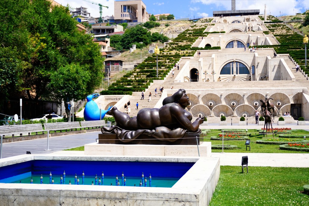 C’est toujours Alexandre Tamanian aux commandes de la résurrection d’Erevan qui imaginera la Cascade dans les années vingt, cet escalier monumental orné de terrasses et de fontaines. Oublié sur la planche à dessin à la mort de l’architecte, l’idée fût cependant reprise par Moscou, séduit par ce concept monumental et fût construit en 1970. Aujourd’hui point inévitable d’une visite à Erevan, l’escalier est également devenu une galerie d’oeuvres d’art contemporaines à ciel ouvert. Elle accueille des artistes internationaux comme le colombien Botero ou l’espagnol Jaume Plensa.