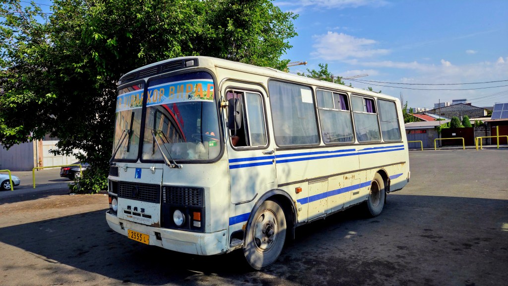 Sur la route du retour, un gars nous embarque dans sa voiture. On ne lui dit pas où on va, il ne le demande pas. Il démarre en trombe. Une musique du diable fait trembler sa vieille Gaz Volga rugissante. Les sièges sont défoncés, l’air est chaud, les fenêtres béantes, un drapeau arménien et une croix pendent au rétroviseur. Ararat dans le ciel bleu défile en cinémascope accéléré derrière les cerisiers de bord de route.