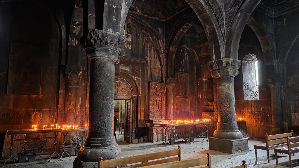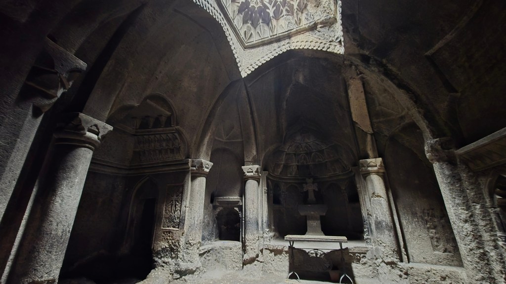 On achève cette visite en apothéose en assistant à un concert improvisé d’un quatuor de choristes. En visite à Gherard, ils en profitent pour éprouver la parfaite acoustique d’une des chapelles troglodytes. Nous restons immobiles et silencieux, enveloppés par la musique, dans la pénombre presque mystique des premiers jours d’un christianisme aux frontières orientales de l’Europe.