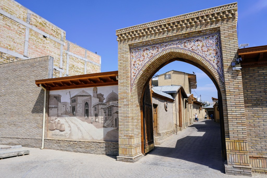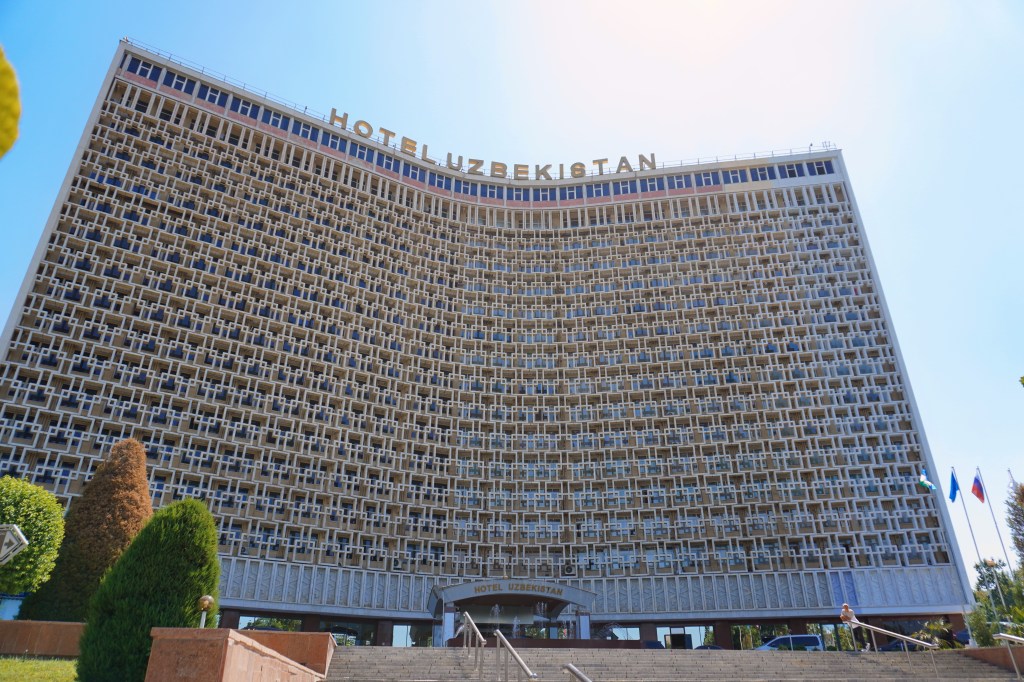 A l’arrière de la place, l’hôtel Ouzbékistan, vestige de l’Intourist soviétique chargé alors de l’hébergement des visiteurs étrangers, rappelle d’ailleurs par son imposante façade cette part récente de l’histoire du pays.