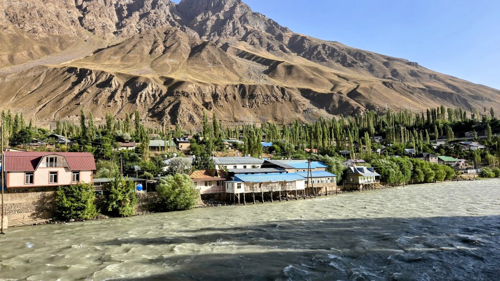 Coincée entre les montagnes, au carrefour de deux rivières, elle est aussi cernée par deux routes. Au nord la M41 qui continue son chemin dans le Pamir. Au sud, la piste qui s’engage dans la vallée du Wakhan en longeant la frontière afghane. C’est cette dernière que nous décidons d’emprunter le lendemain. A la condition de trouver un véhicule.