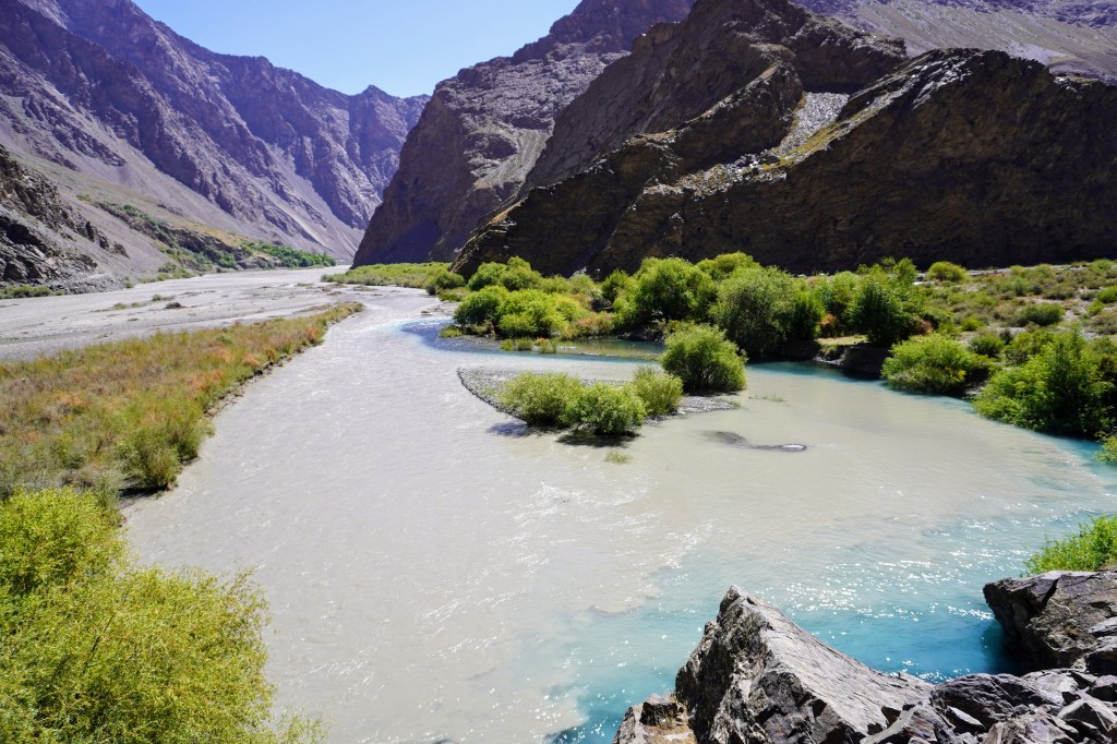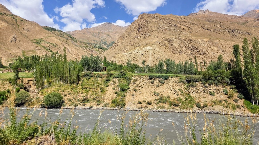 Au moment de prendre un cliché de l’Afghanistan depuis la voiture, un vieil homme qui voyage avec nous explique qu’il ne faut pas prendre de photos car les talibans nous observe. On perçoit immédiatement l’inquiétude des wakhis à l’égard de leurs sinistres voisins. Rien n’est normal ici et personne ne s’habitue à la situation récente. Les islamistes de Kaboul n’étaient, jusqu’à très récemment, pas encore présents dans cette vallée extrêmement isolée. Alors désormais on jette un œil de l’autre côté. Si la population du Wakhan tadjik mène une vie traditionelle, elle n’en est pas moins plutôt libérale et se trouve être à l’opposé des valeurs des talibans. On se refait une nouvelle fois contrôler nos permis de voyager dans la zone. L’arrêt obligatoire repose un instant les os du chaos de la route. Rien n’est normal dans cette région, à commencer par ce paysage inouïe de beauté.