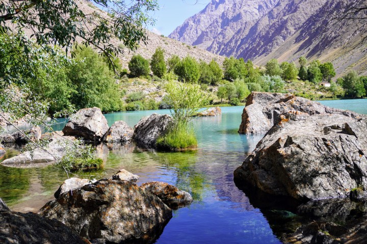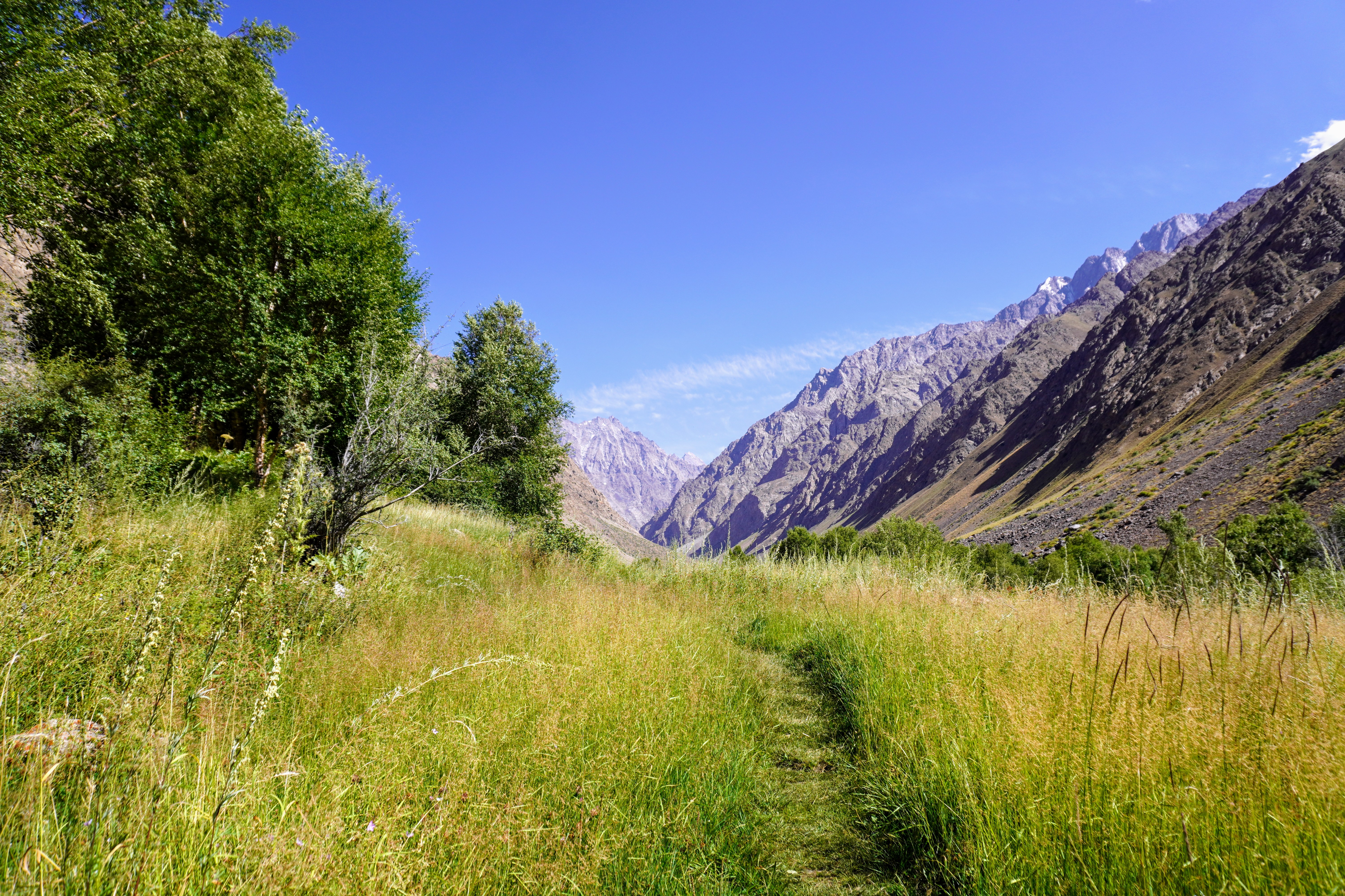 Sur le tapchan, à l’abri du auvent qui se fait canarder d’abricots petits et ronds comme des cerises, on regarde la famille qui nous accueille pour la nuit. Les enfants jouent sur l’herbe, se courent après, s’écroulent et repartent en riant, les adultes s’affairent au séchage des fruits pour l’hiver à l’ombre d’un arbre. Ils gobent autant d’abricots qu’ils en mettent dans le panier. L’été est une bénédiction pour les oiseaux comme pour les humains, il faut manger et chanter avant le retour du rude hiver. A quelques mètres de là, la rivière Jizevdara est un bruit de fond qui fait la course avec les rafales de vent tiède tournoyant dans la vallée. On nous offre le thé, on se prépare une soupe de nouille sur notre réchaud. On s’endort un instant avant de repartir sur le sentier qui continue plus haut.